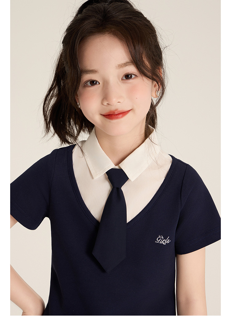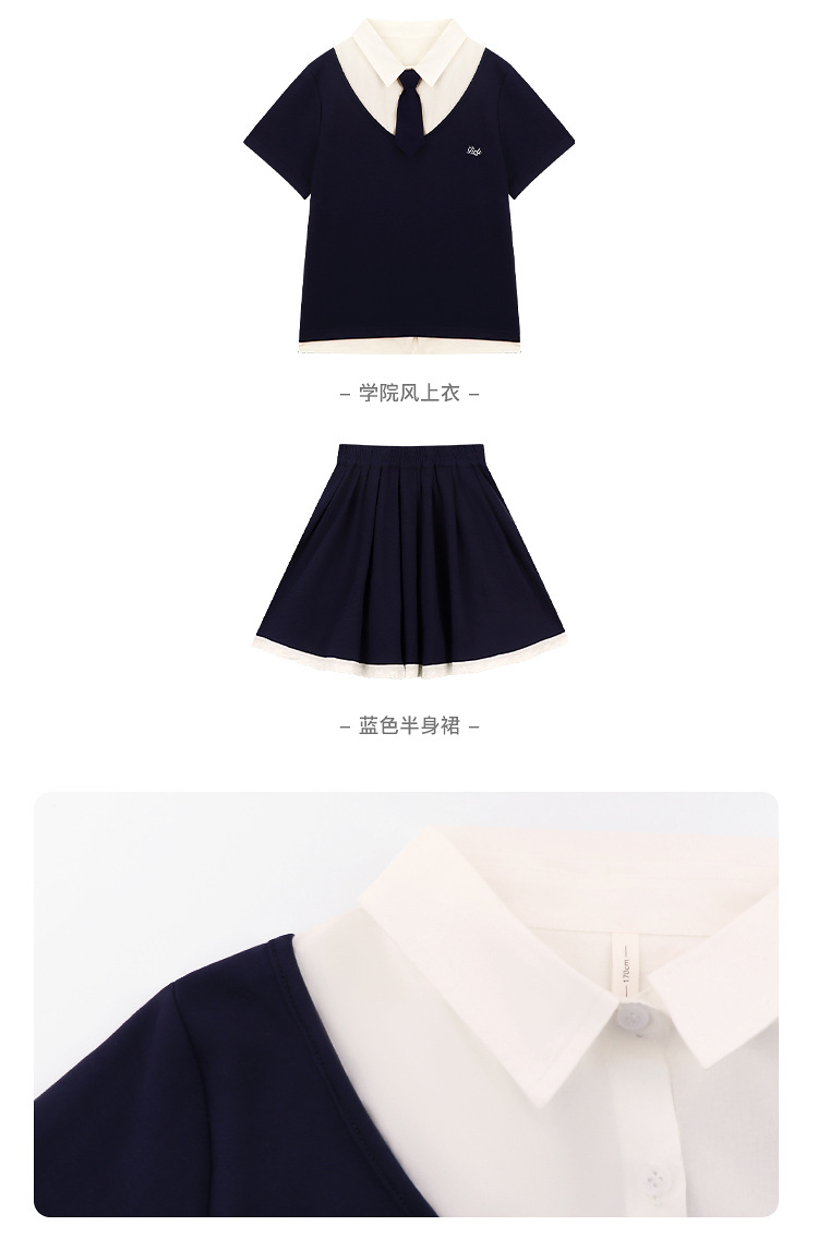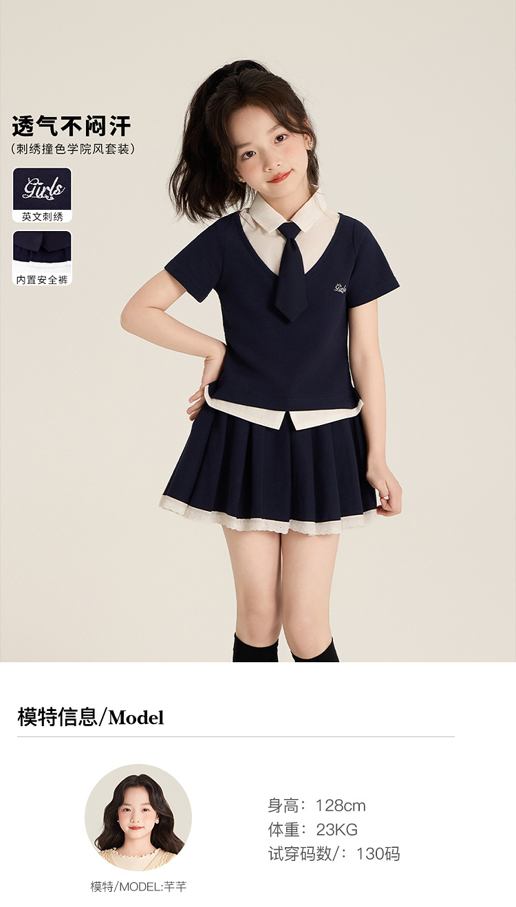 Amybaby Girls 세트 2025 년 여름 새로운 한국식 대학 가짜 투피스 탑 스커트 자수 세트스토어 가기
