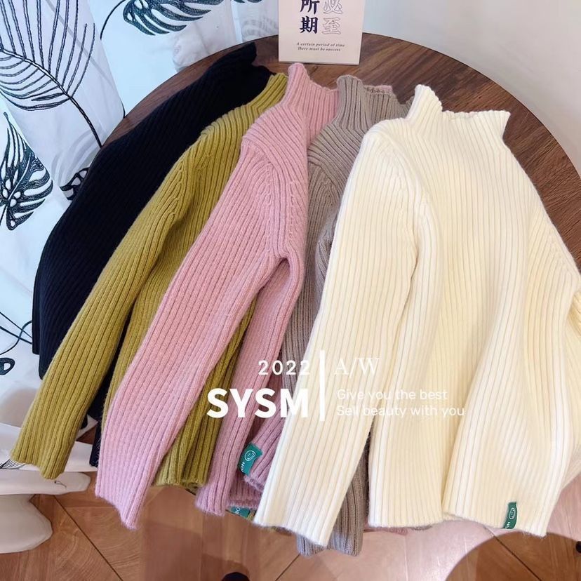 [재고 남학생 반터틀넥 스웨터 가을과 겨울 새 스트레치 니트웨어 솔리드 컬러 풀오버 피트 줄무늬