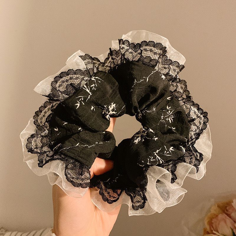 메쉬 레이스 헤드웨어 골동품 우아한 헤어 링 여성의 높은 탄성 올 매치 헤어 로프 헤어 로프 대형 내장 헤어 링스토어 가기