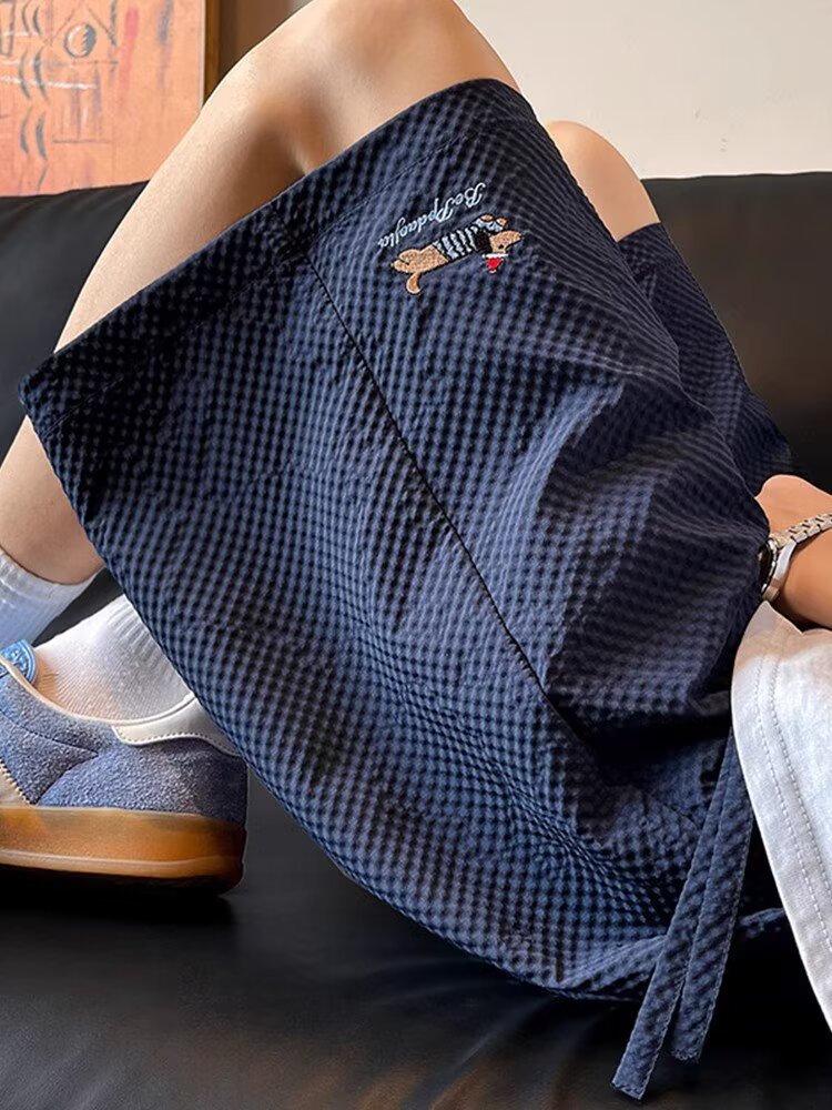 여름 도파민 시어서커 반바지 남성용 닥스훈트 강아지 얇은 5부 바지 비치 속건 캐주얼 미드팬츠