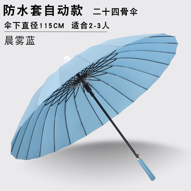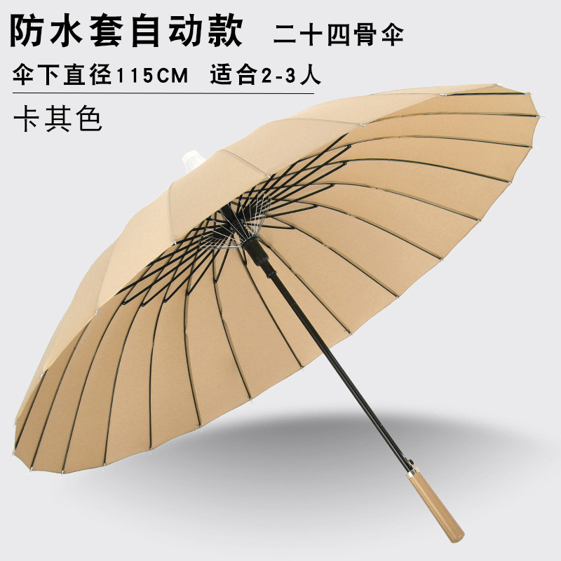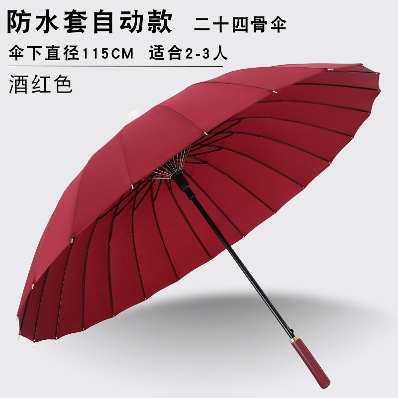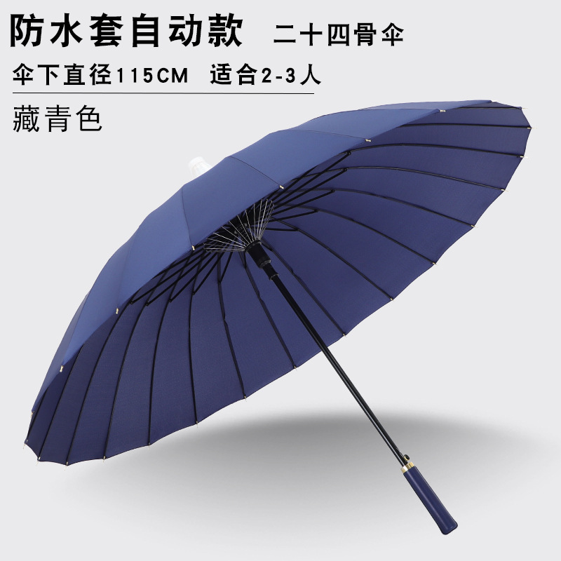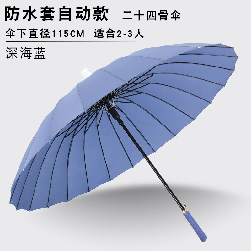 24본 방수 커버 자동 우산 남성용 대형 긴 손잡이 우산 대형 더블 스트레이트 스틱 폭풍 방지 지원 로고 인쇄스토어 가기