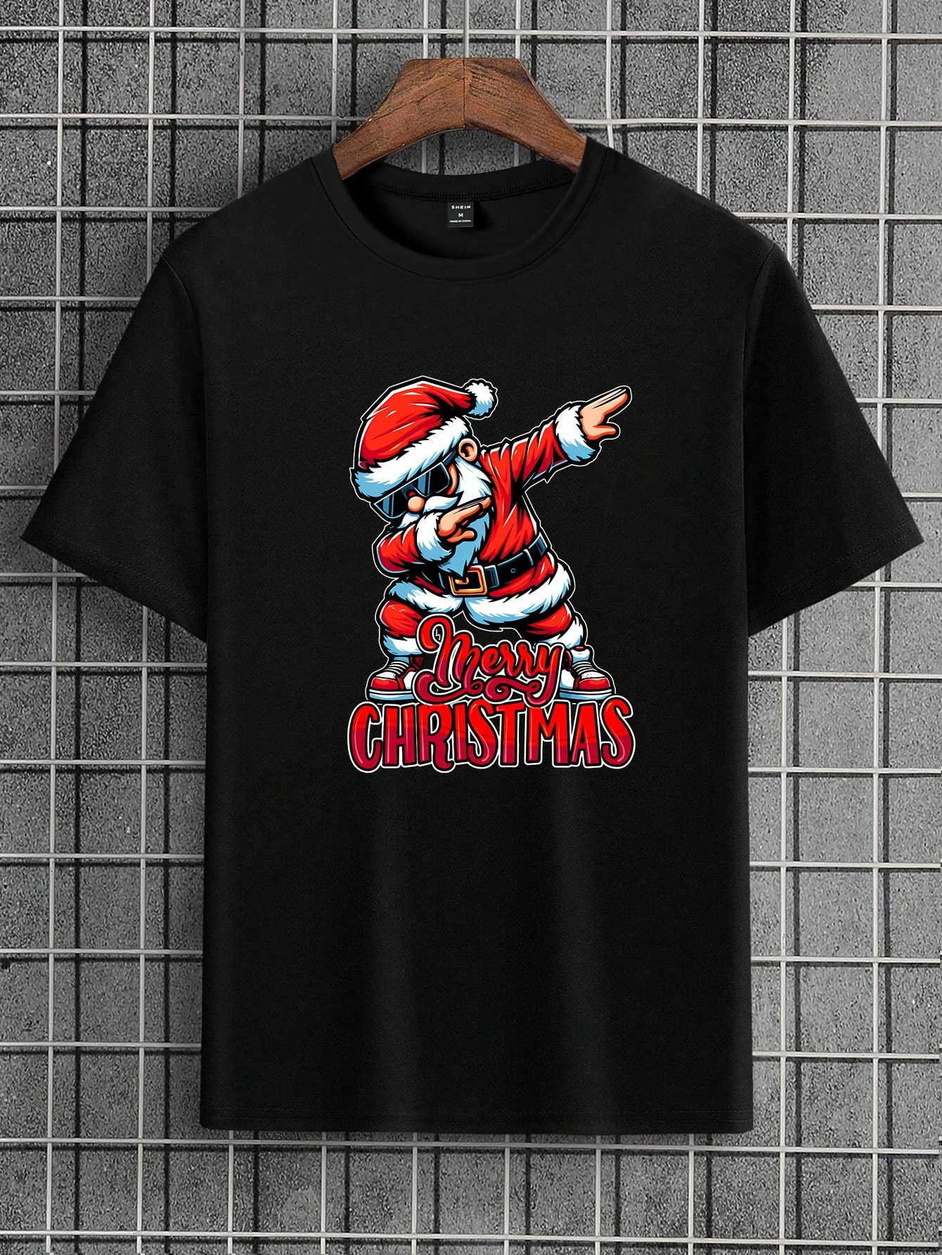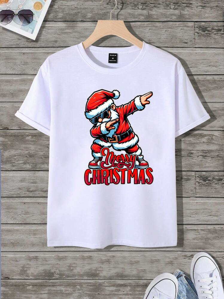 국경 간 재미와 잘 생긴 산타 클로스 프린트 남성 하이 스트리트 숄더 크루 넥 패셔너블 통기성 느슨한 반팔 티셔츠스토어 가기