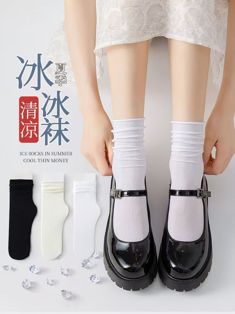 여름 한국식 초박형 수직 곡물 얼음 양말 인기 컬러 학술 스타일 스타킹 쌓인 스타킹 화이트 아이스 스타킹스토어 가기