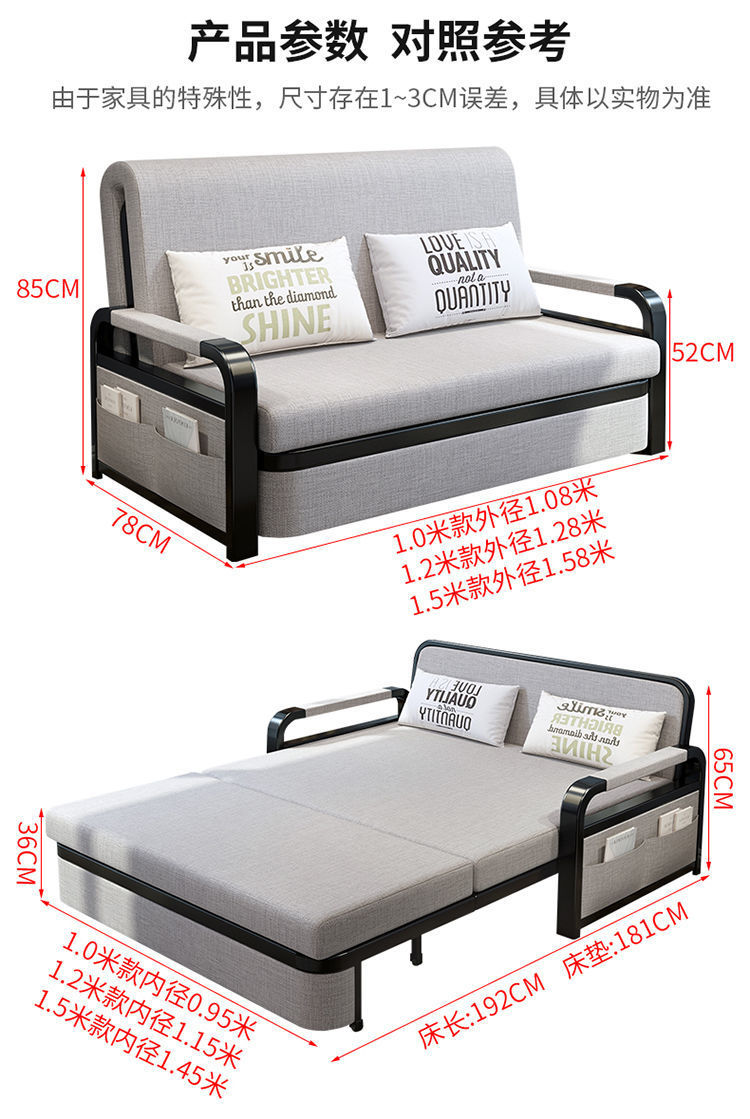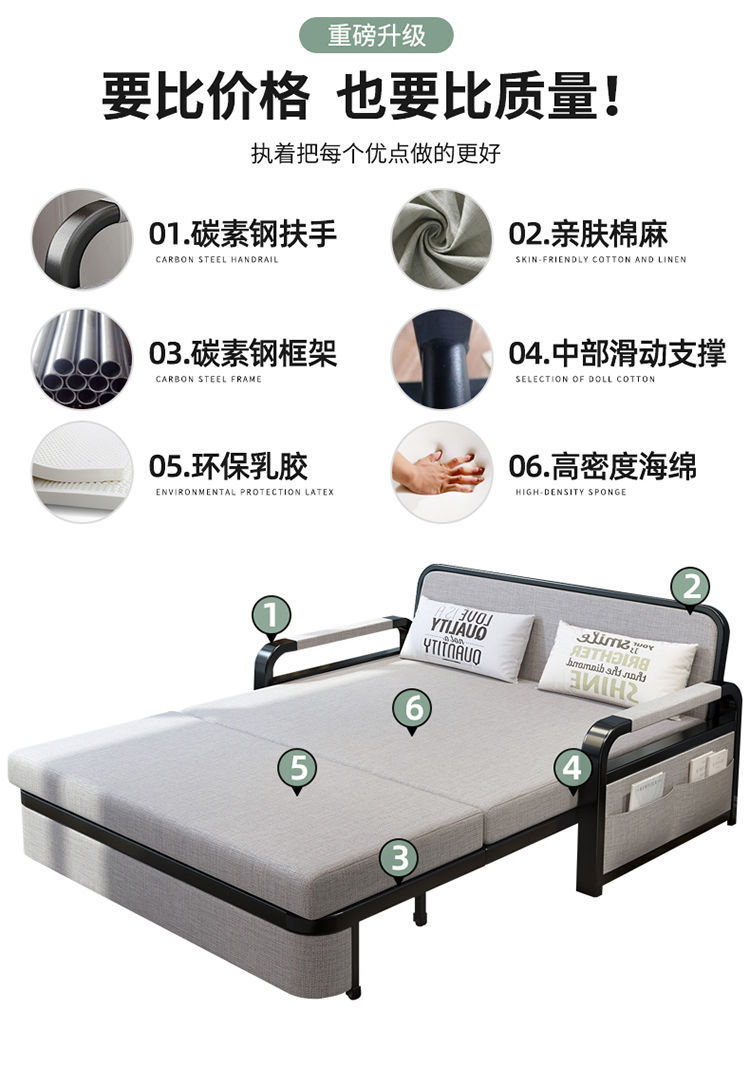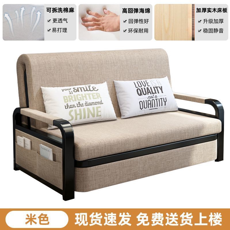 접이식 침대 가정용 싱글 침대 간단한 점심 시간 침대 작은 아파트 싱글 및 더블 개폐식 거실 발코니 패브릭 소파 침대
