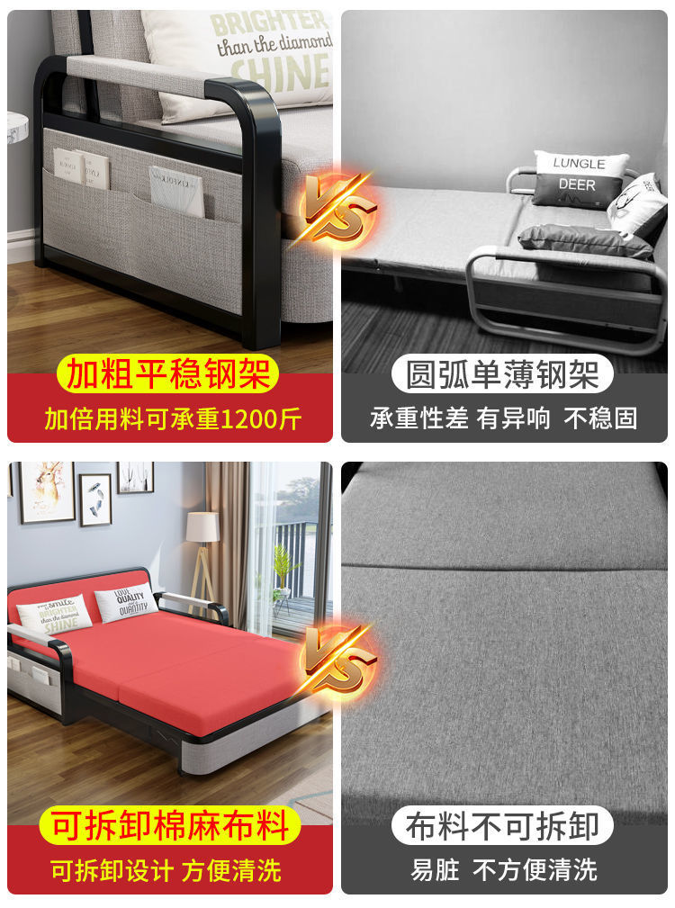 접이식 침대 가정용 싱글 침대 간단한 점심 시간 침대 작은 아파트 싱글 및 더블 개폐식 거실 발코니 패브릭 소파 침대스토어 가기