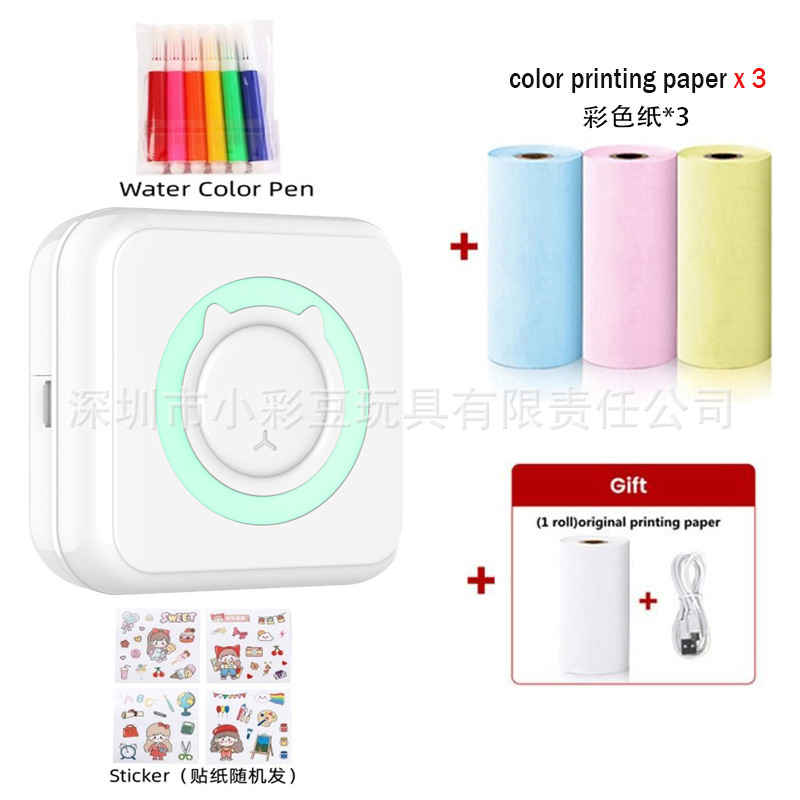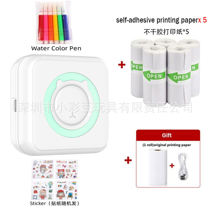 • C15 그린-영어 버전 [감열지 1롤 + 감열지 5롤 + 스티커 5롤 + 컬러지 3롤 + 수채펜 6개 + 가방 + 전자 애완동물]