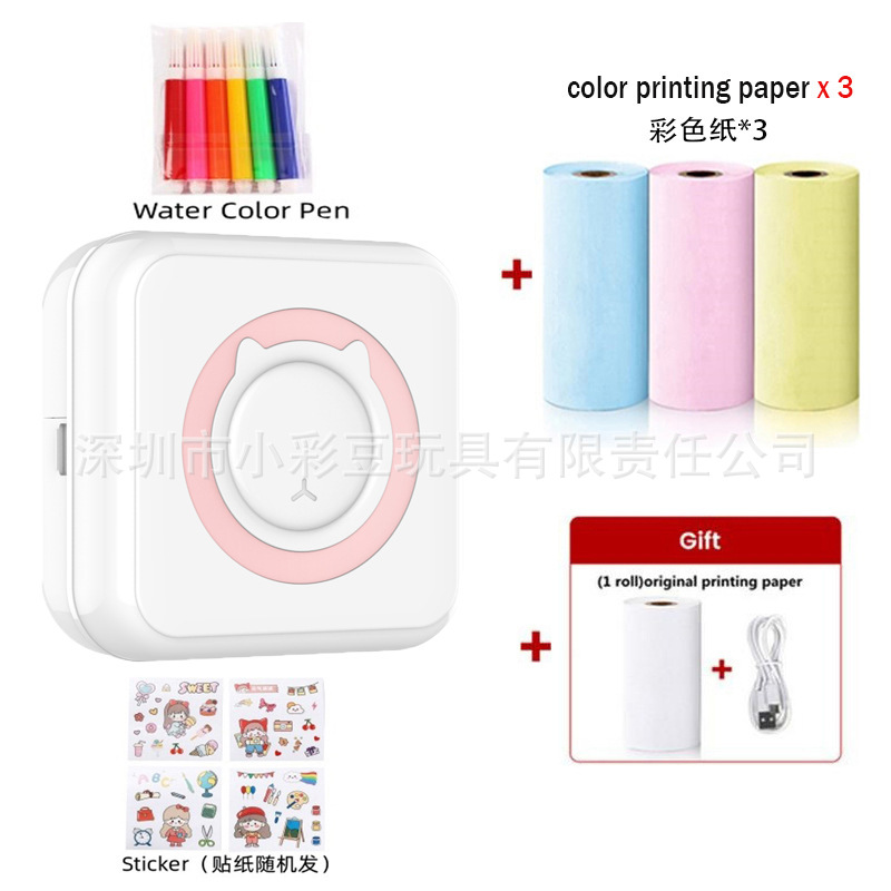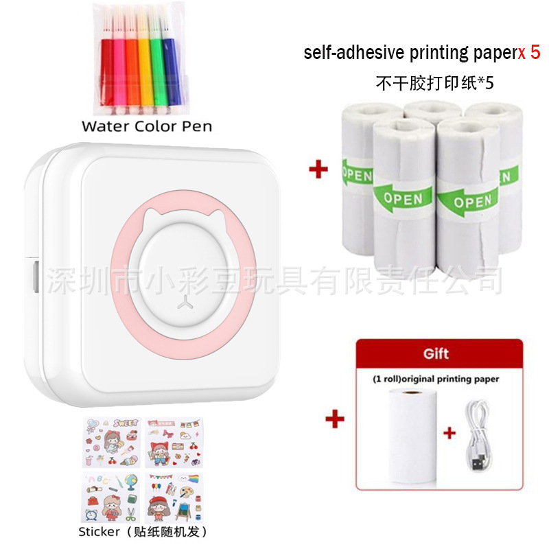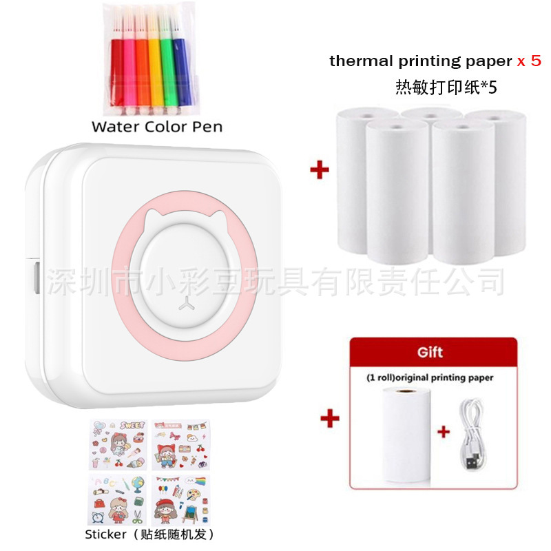 • C15 핑크-영어 버전 [감열지 1롤 + 감열지 5롤 + 스티커 5롤 + 컬러지 3롤 + 수채펜 6개 + 가방 + 전자 애완동물]