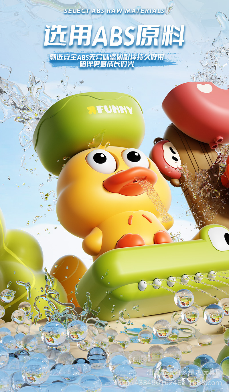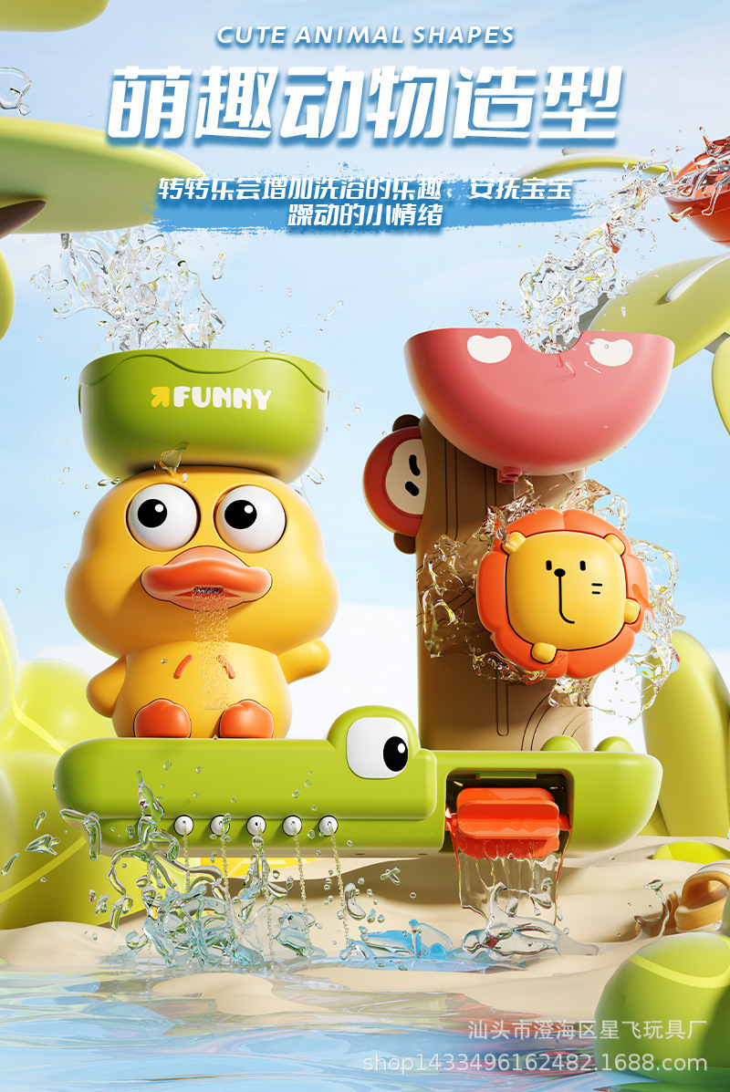 국경 간 아기 물 장난감 빨판 회전 노란색 오리 물 휠 욕실 샤워 남성과 여성 아기 목욕 장난감