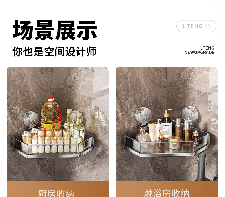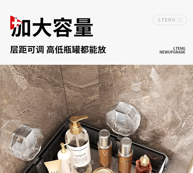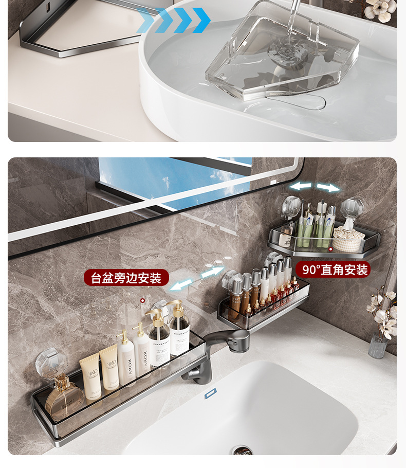 공장 욕실 벽걸이형 선반, 펀치 없는 벽걸이형 욕실 수납 선반, 진공 흡입 컵 수납 선반스토어 가기