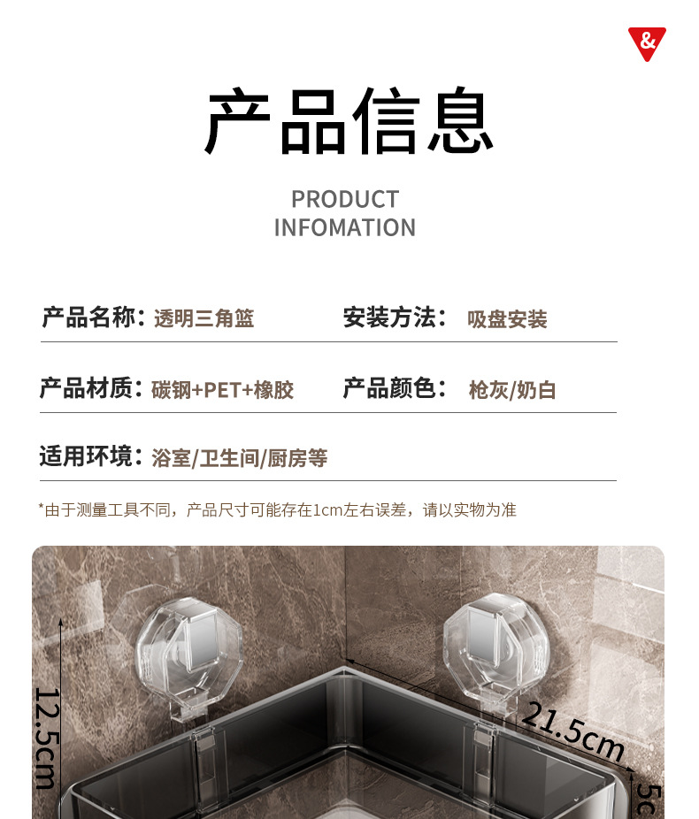 • 단일 레이어 투명 회색 욕실 삼각형 바구니