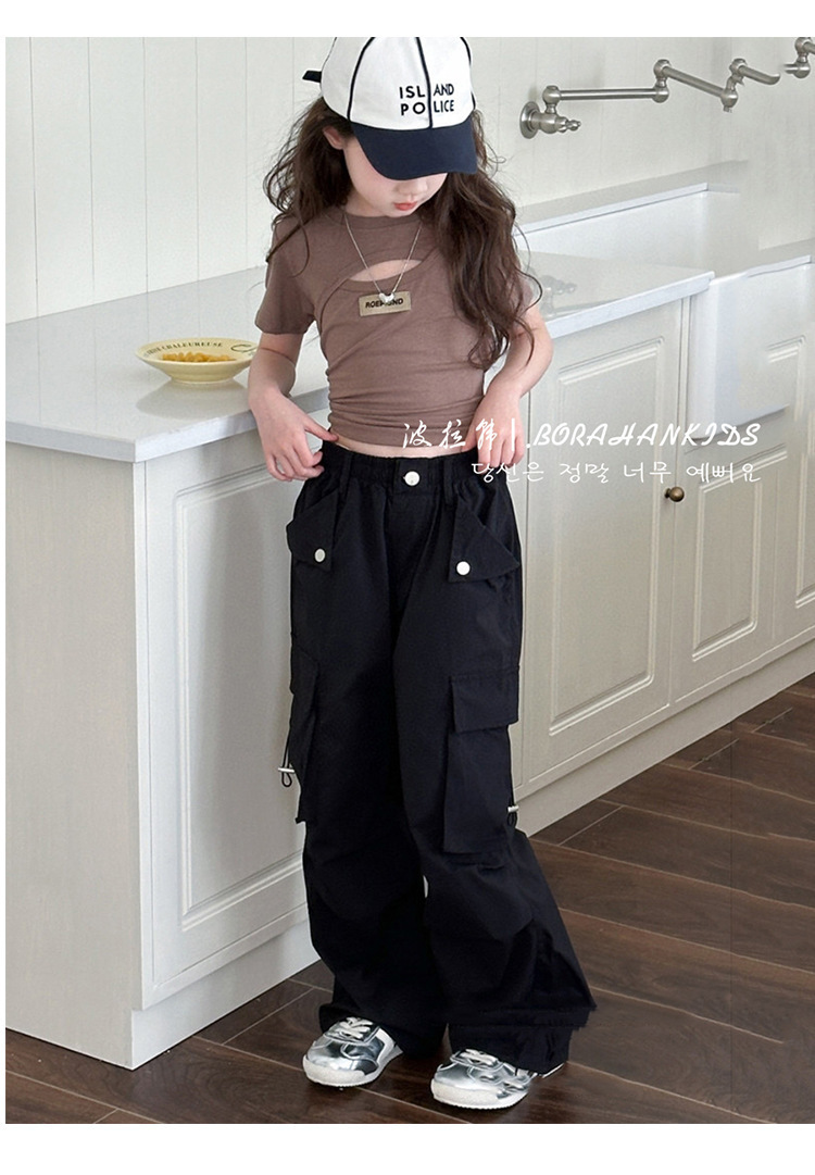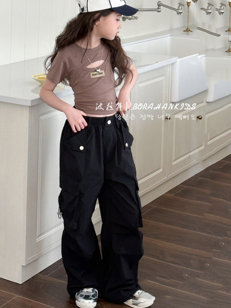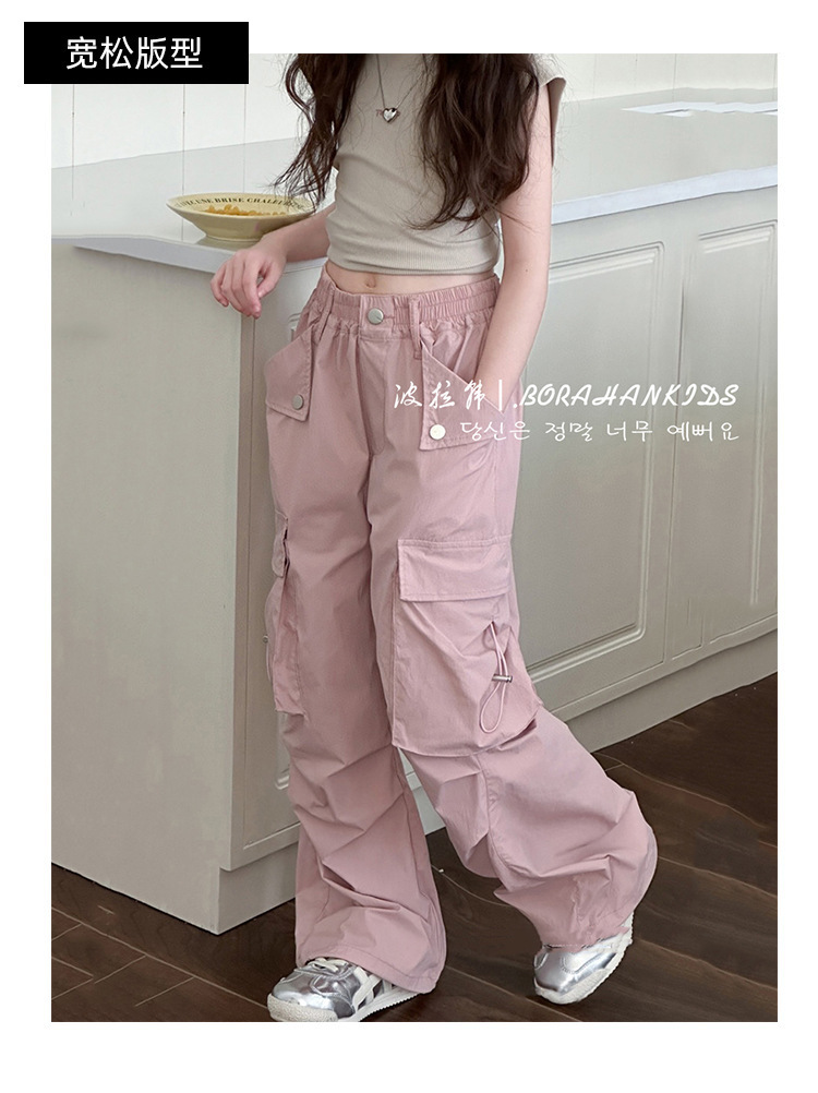 여아용 패셔너블한 작업복, 봄 여름 아동 캐주얼 바지, 2025년 신형 중대형 아동용 루즈 스트레이트 팬츠, 남아용 바지스토어 가기