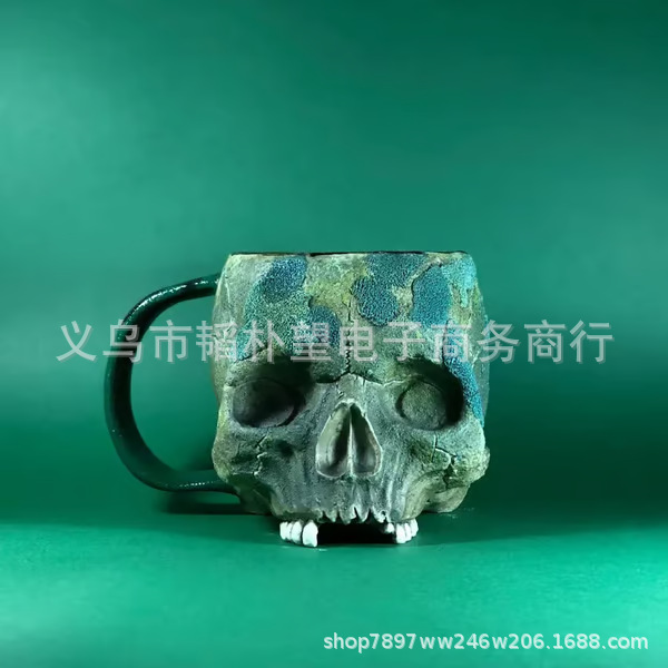 국경 간 신제품 Mossy Skull Mug Mossy Skull Cup 공포 수지 공예 장식품