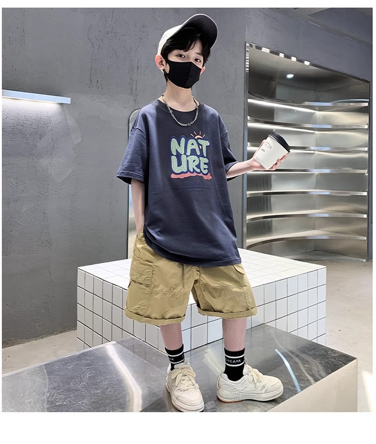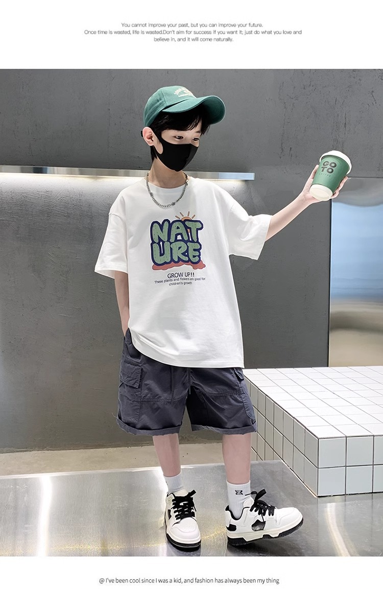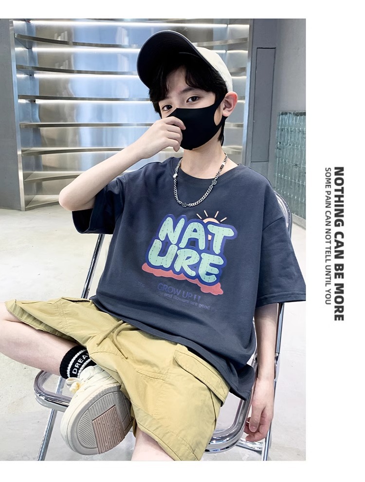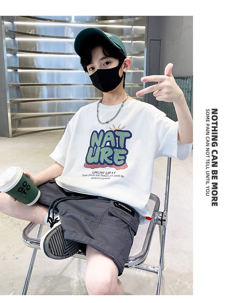 소년 여름 반팔 티셔츠 2024 새로운 어린이 핸섬 프라이드 스트리트 빅 보이 루즈 올 매치 탑스토어 가기