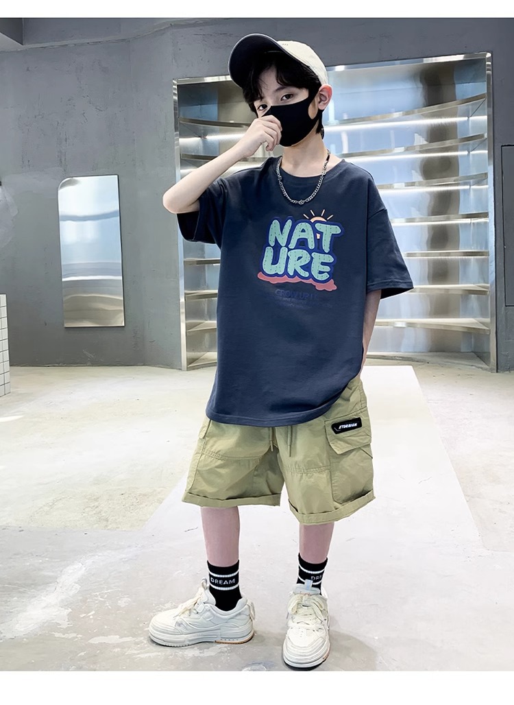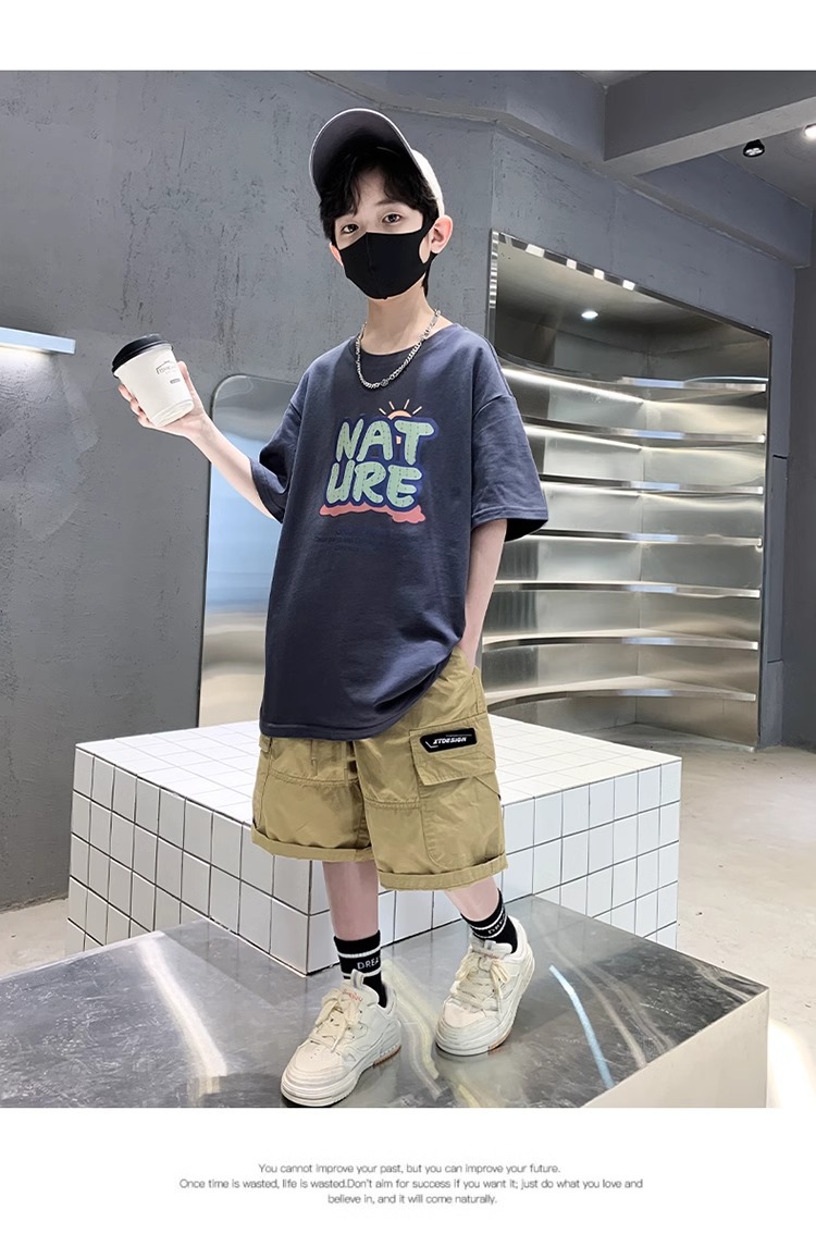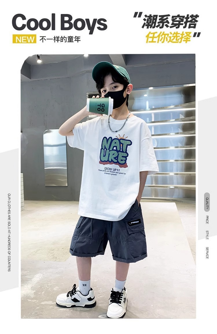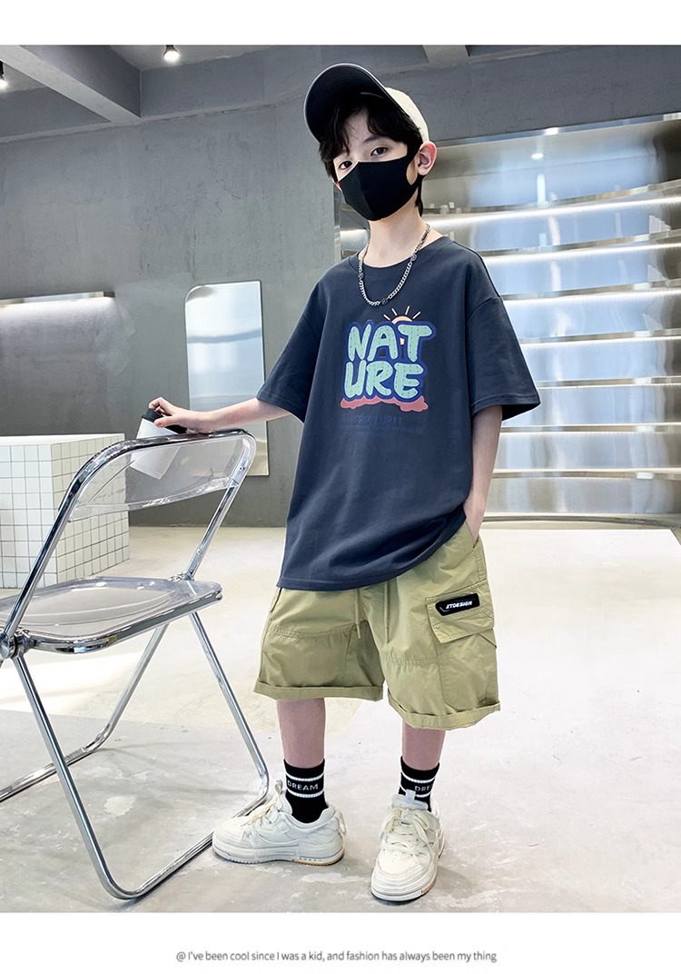 소년 여름 반팔 티셔츠 2024 새로운 어린이 핸섬 프라이드 스트리트 빅 보이 루즈 올 매치 탑스토어 가기