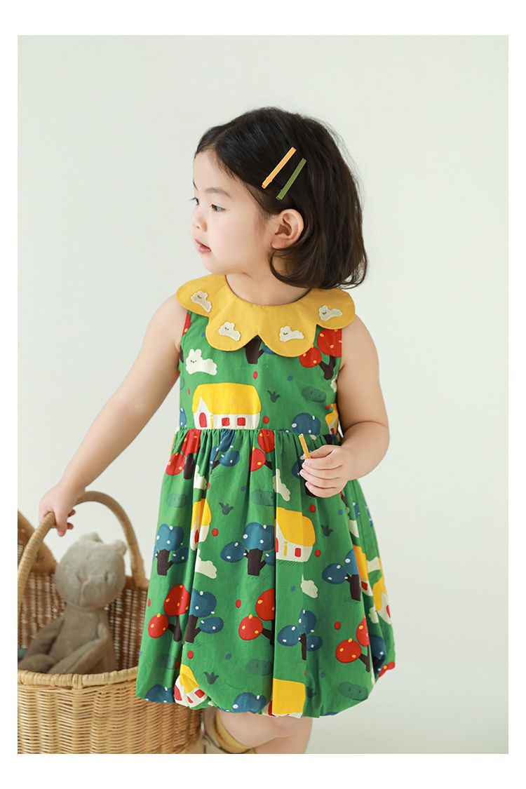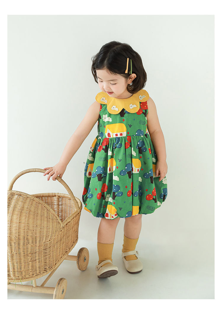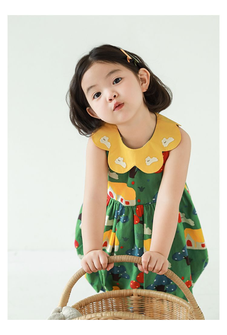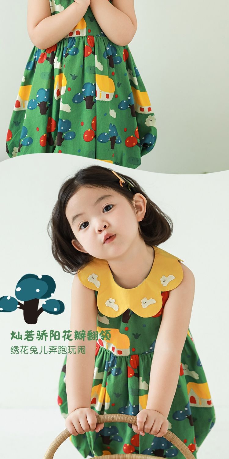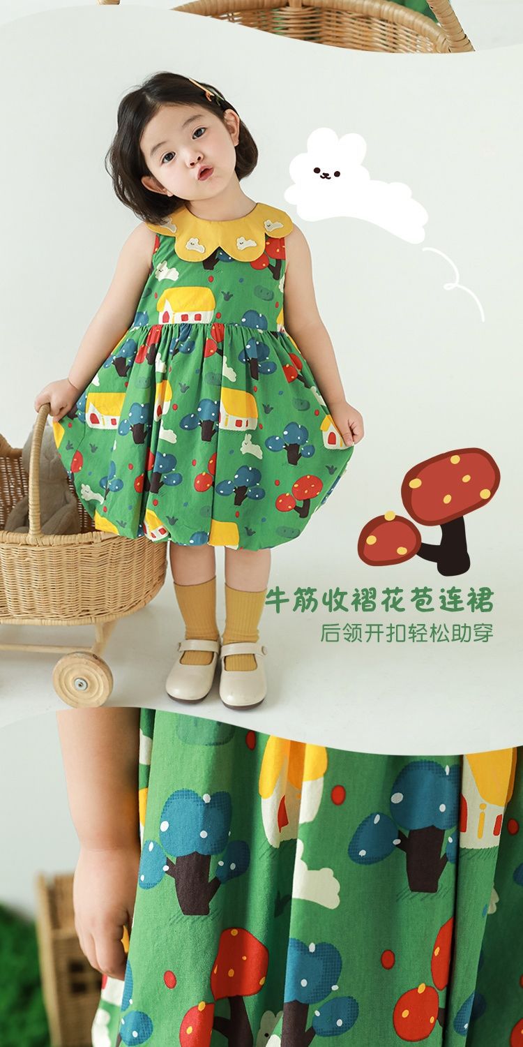 Wuri Bub One Girl's Pleated Flower Bub 스커트 2025 여름 어린이 달콤한 귀여운 꽃잎 옷깃 민소매 원피스스토어 가기