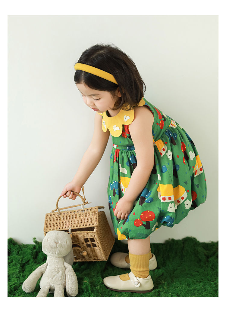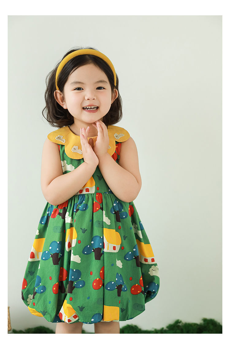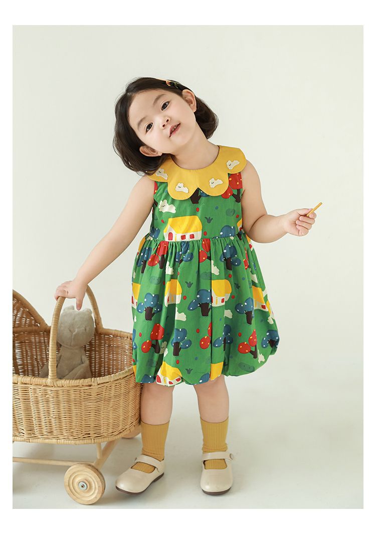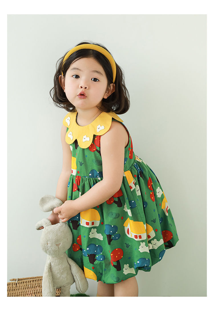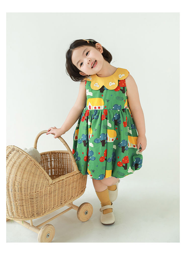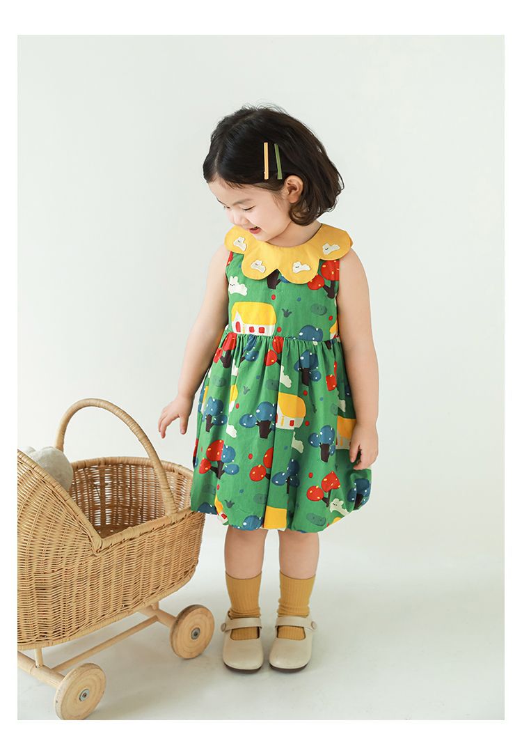 Wuri Bub One Girl's Pleated Flower Bub 스커트 2025 여름 어린이 달콤한 귀여운 꽃잎 옷깃 민소매 원피스스토어 가기