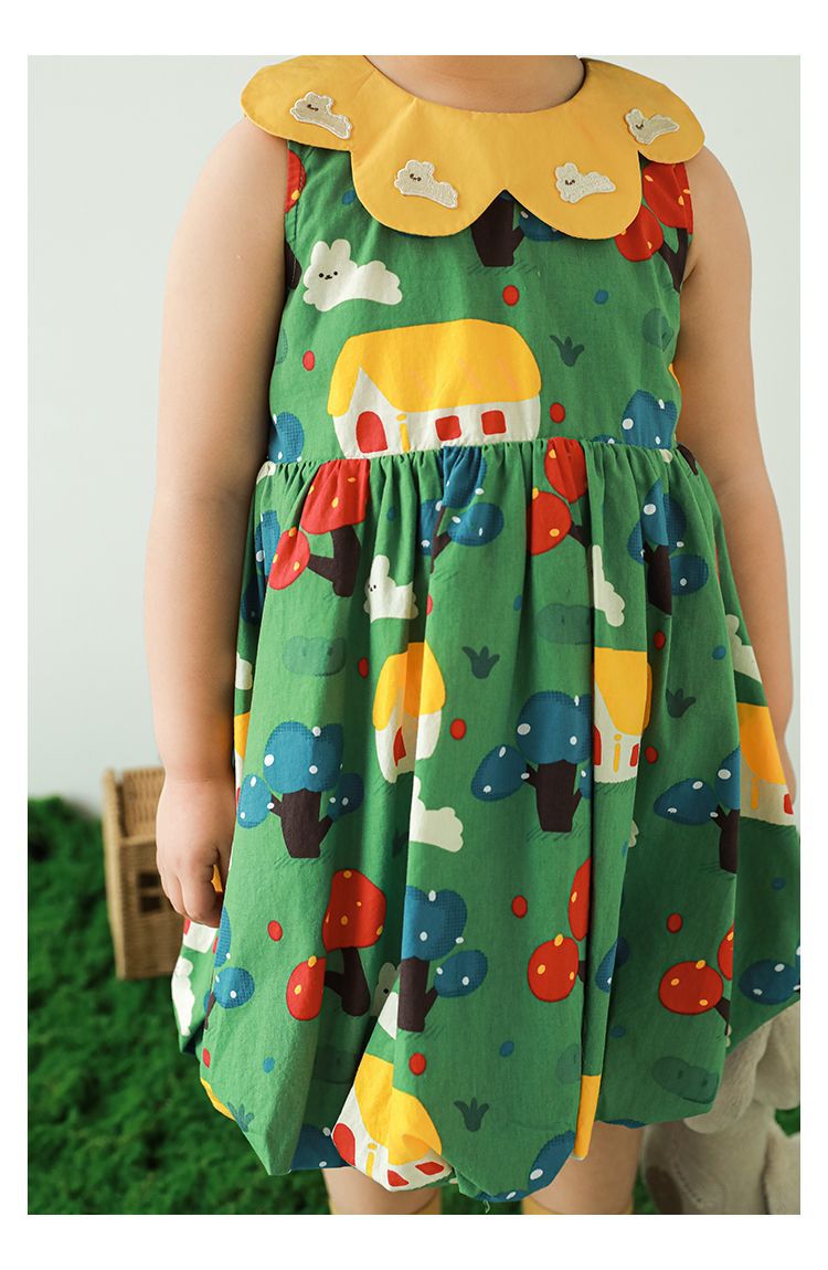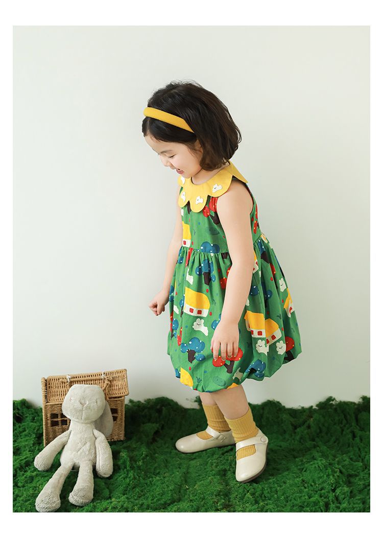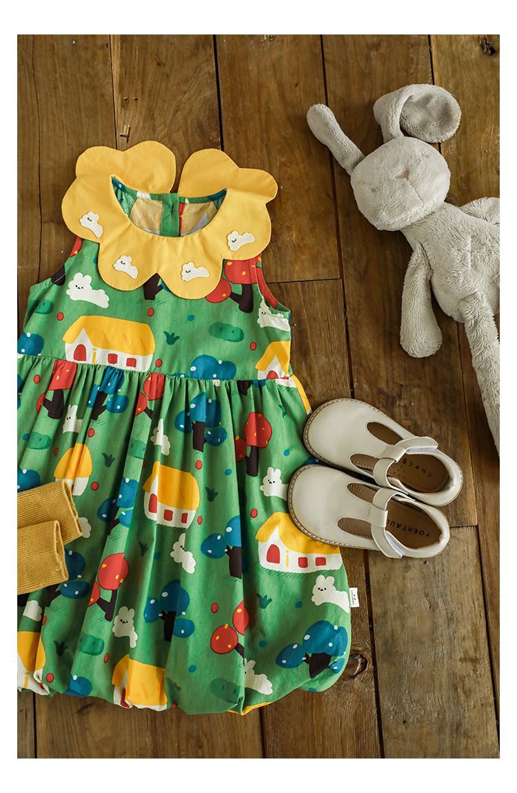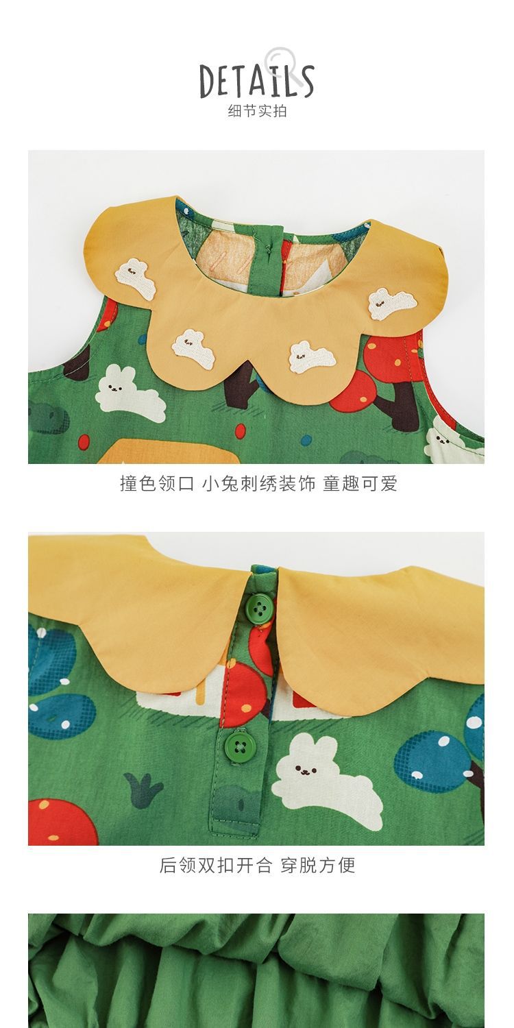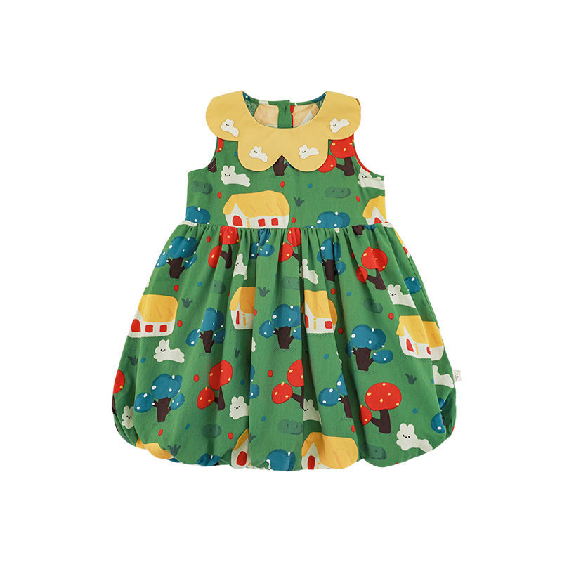 Wuri Bub One Girl's Pleated Flower Bub 스커트 2025 여름 어린이 달콤한 귀여운 꽃잎 옷깃 민소매 원피스스토어 가기