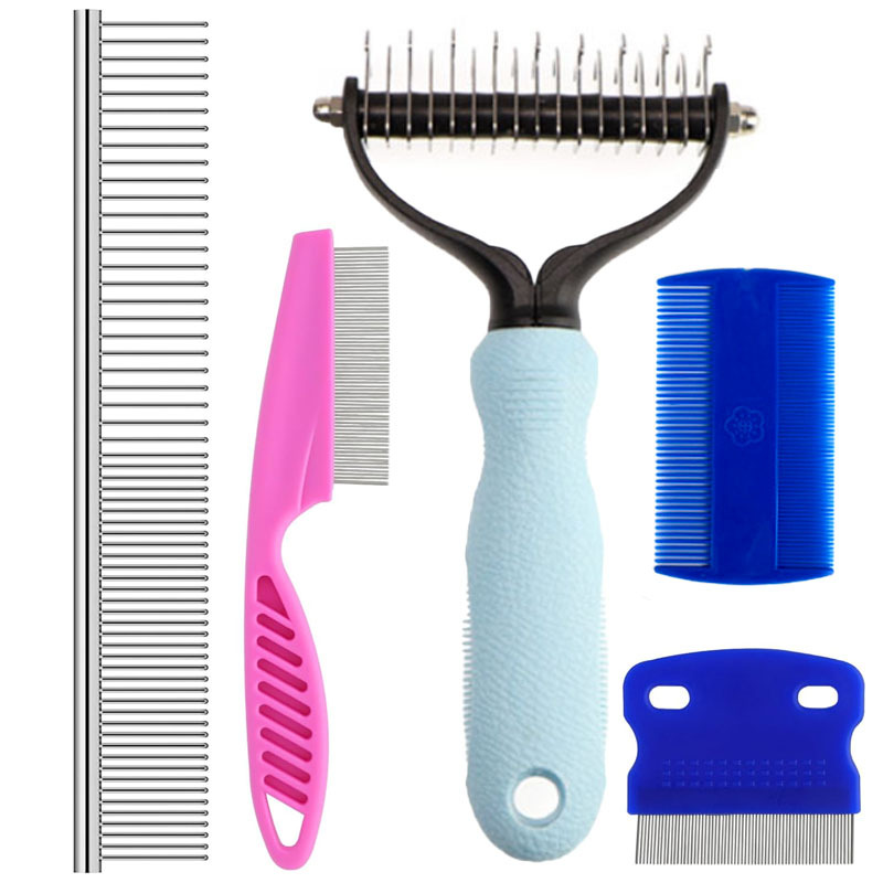 애완견 고양이 오픈 빗 스틸 바늘 빗 암호화 벼룩 이가 블루 플로팅 헤어 고양이 빗 5 피스 세트