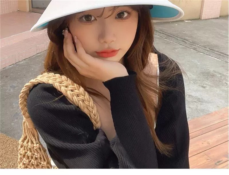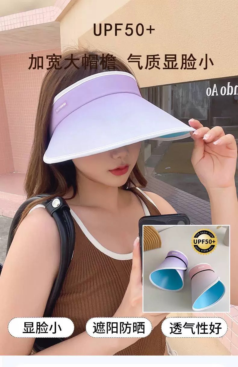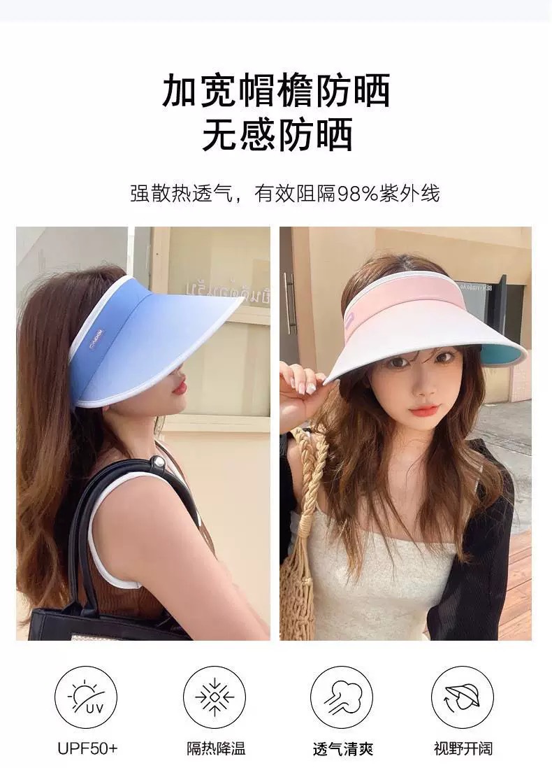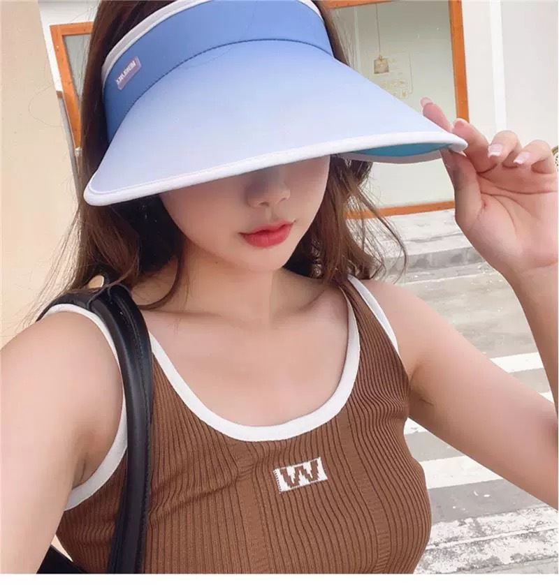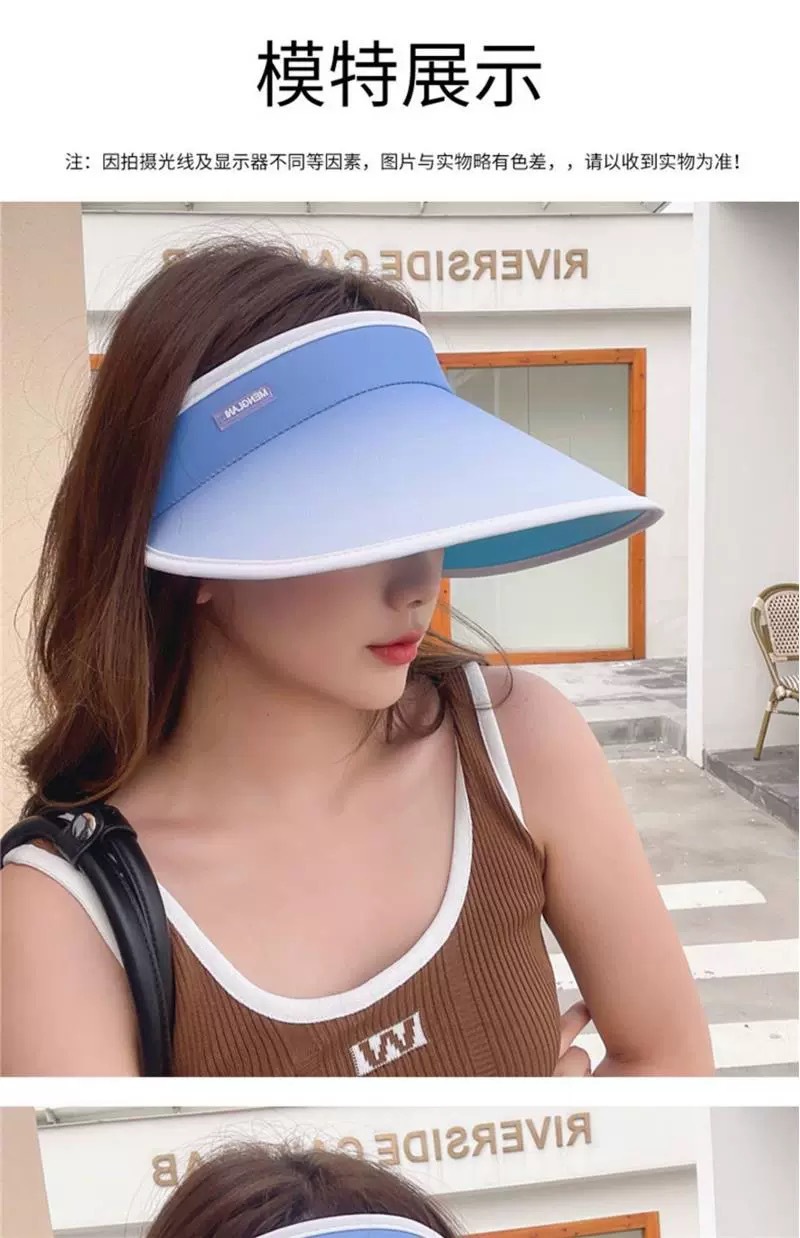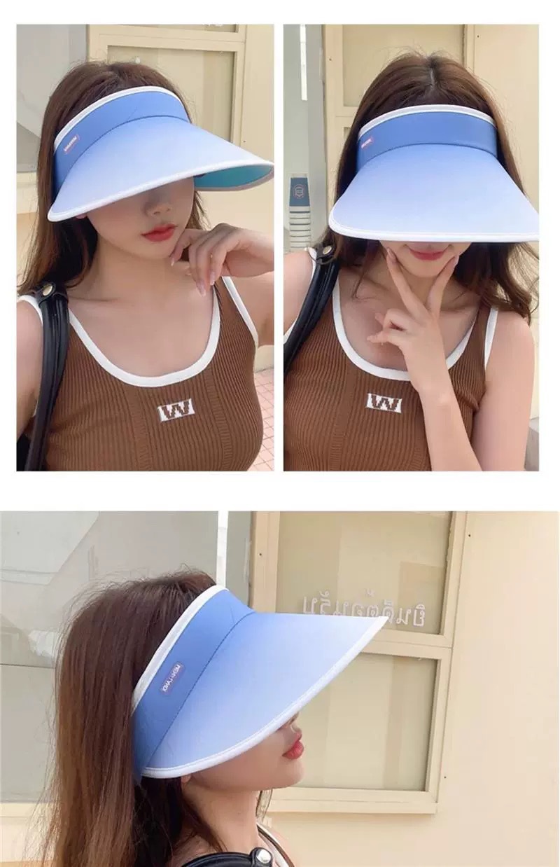 여성을위한 그라디언트 빈 탑 태양 모자 여름 태양 보호 UV 자외선 보호 큰 챙 얼굴 가리개 태양 모자 사이클링 태양 모자