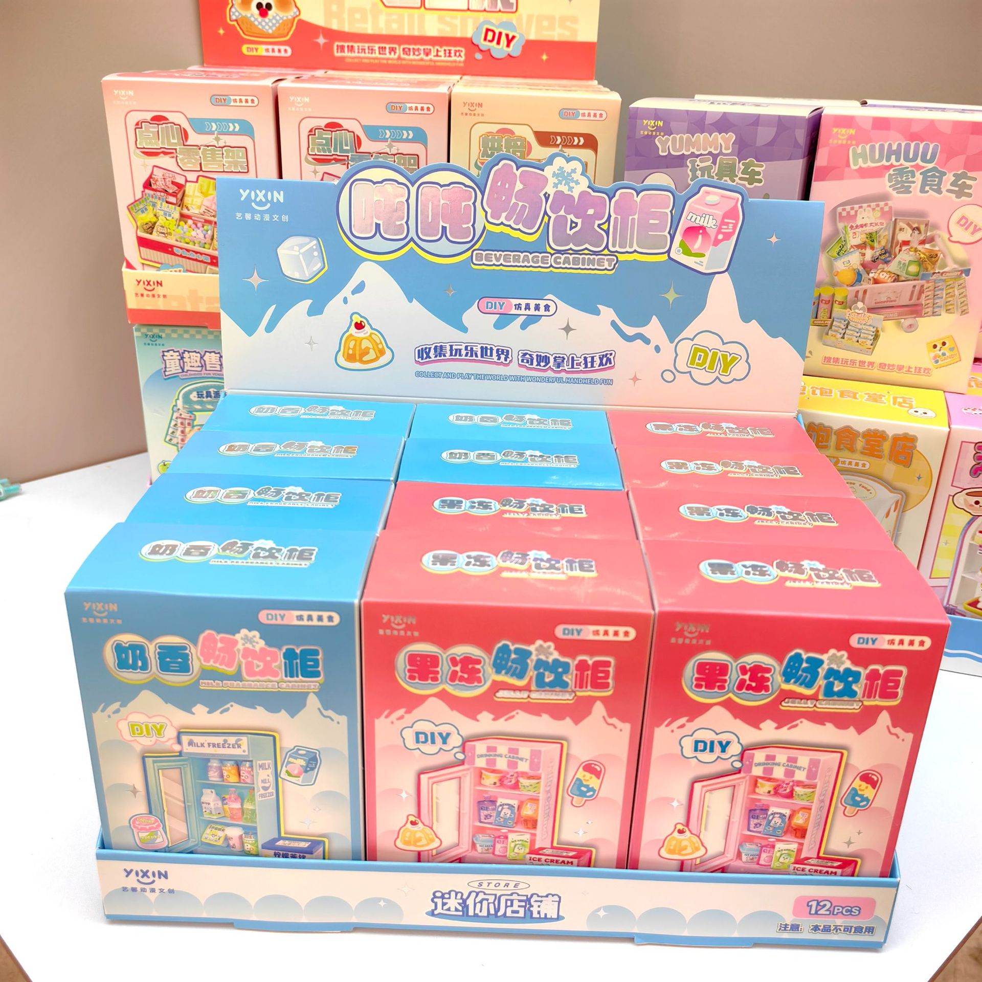 새로운 창조적 인 DIY 캐빈 홈 슈퍼마켓 장면 스티커 모델 수제 놀이 집 장난감 도매스토어 가기