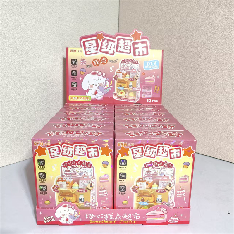 새로운 창조적 인 DIY 캐빈 홈 슈퍼마켓 장면 스티커 모델 수제 놀이 집 장난감 도매