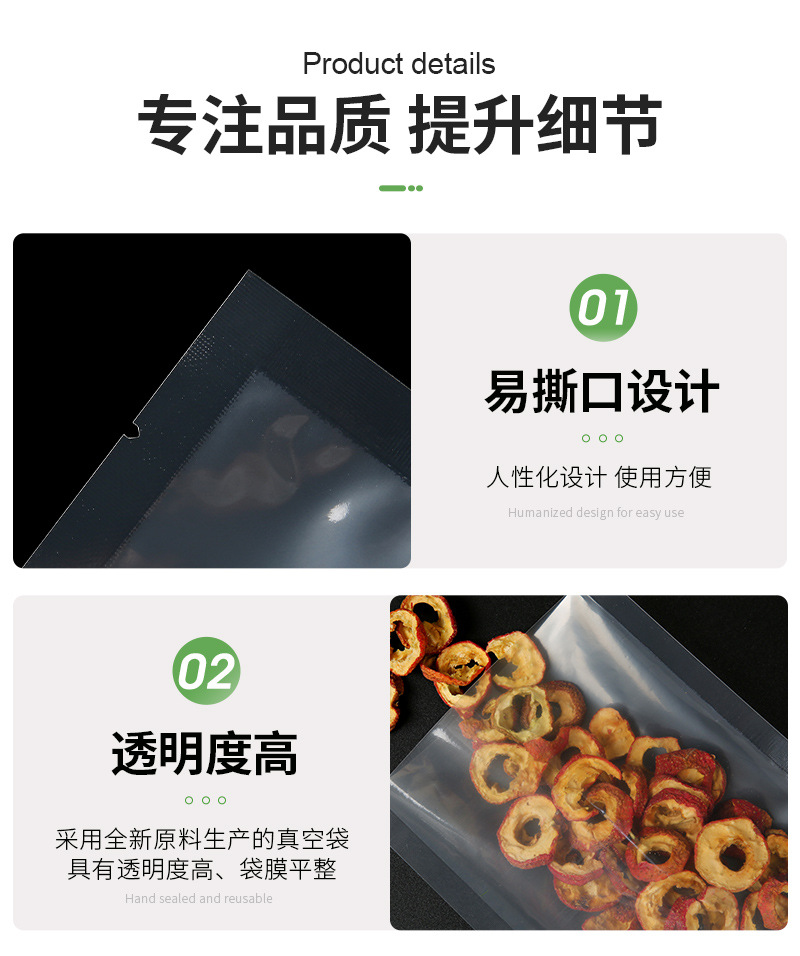 보편적 인 폴리 에스테르 진공 포장 가방 부드러운 밀봉 투명 진공 가방 신선한 알루미늄 호일 식품 포장 가방 사용자 정의