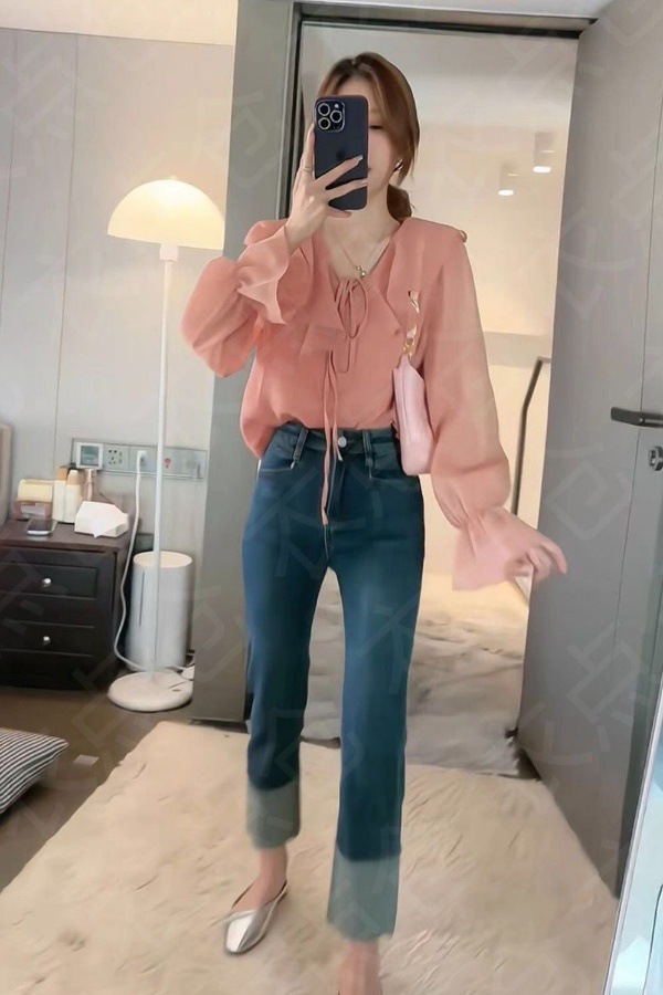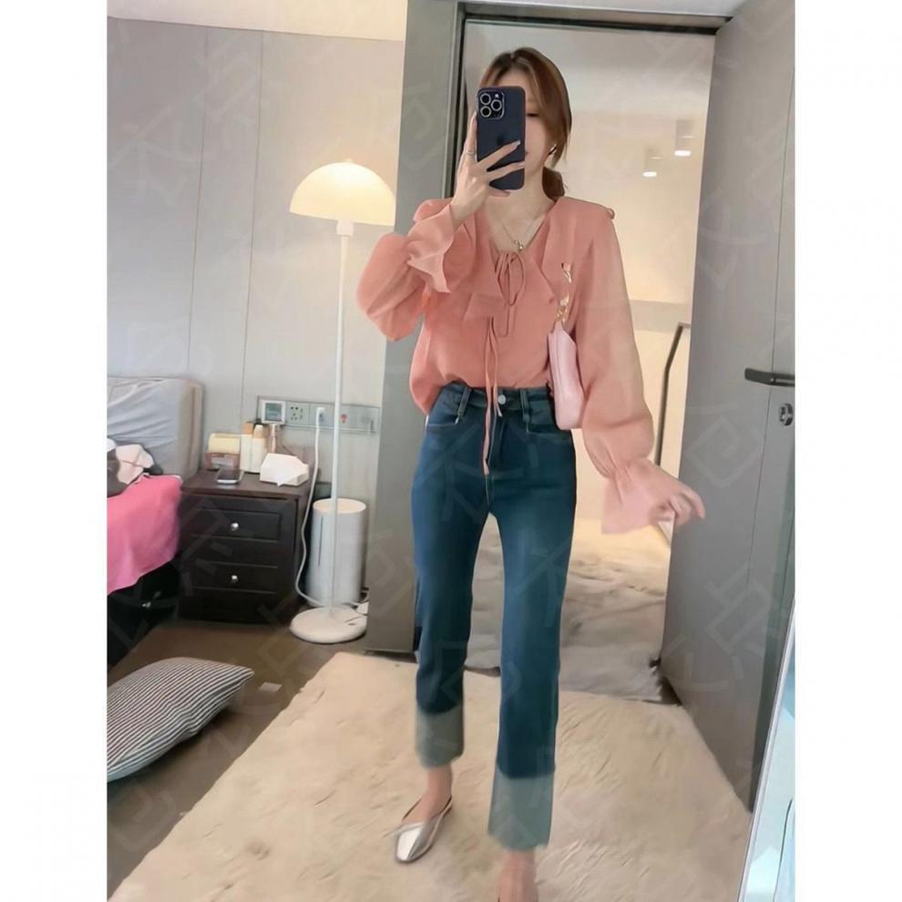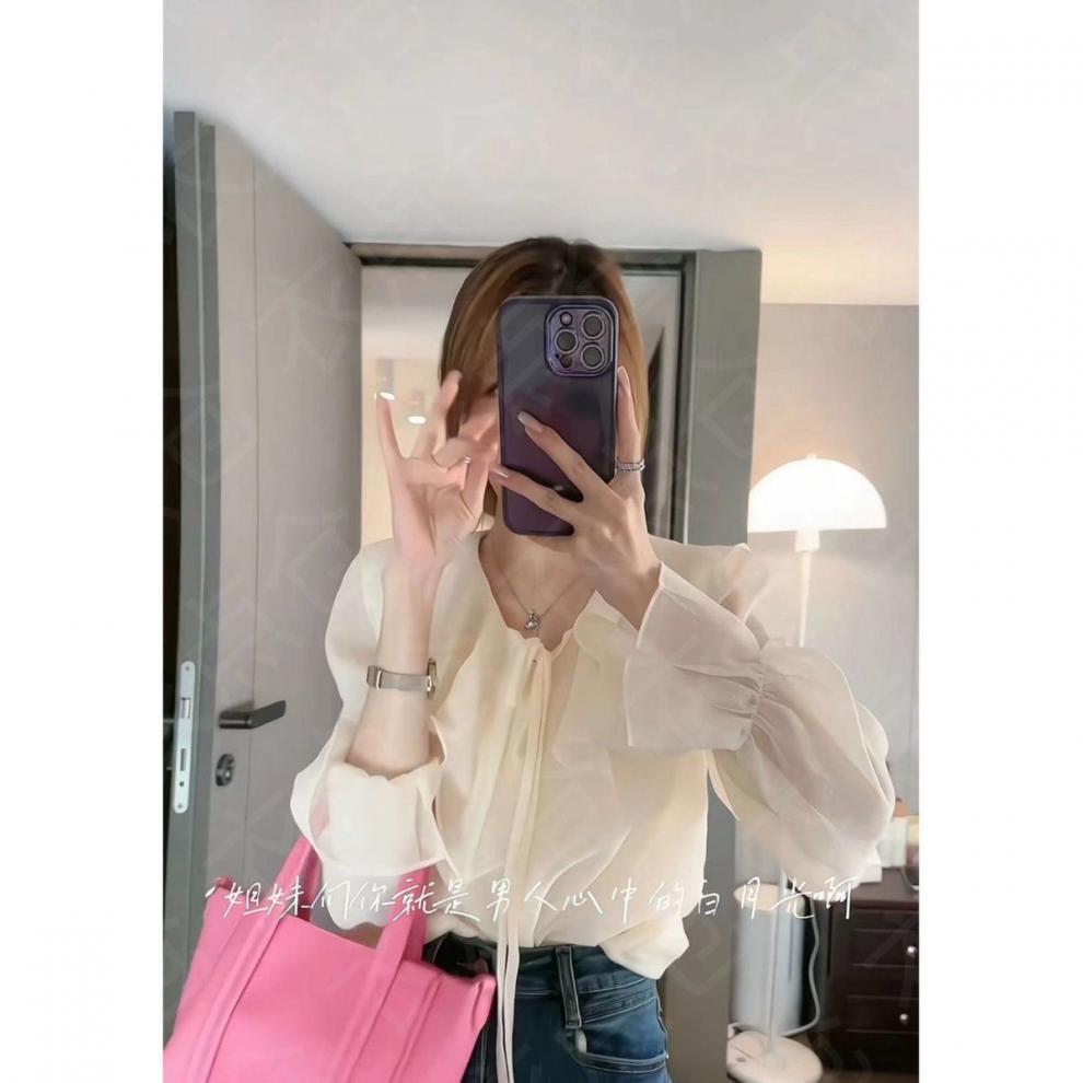 여성을 위한 패셔너블하고 나이를 줄여주는 달콤한 쉬폰 셔츠, 초봄 디자인, 고급 니치 프렌치 슈퍼 페어리웨어 탑스토어 가기