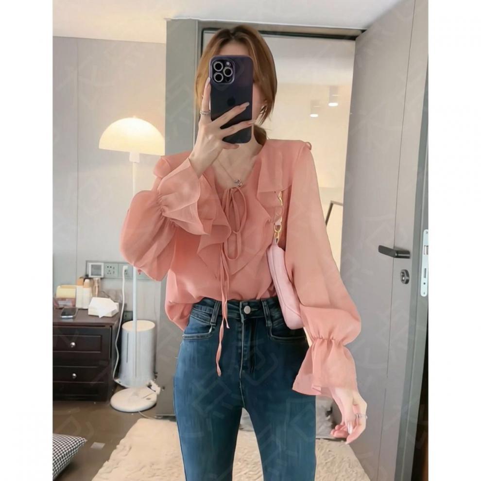 여성을 위한 패셔너블하고 나이를 줄여주는 달콤한 쉬폰 셔츠, 초봄 디자인, 고급 니치 프렌치 슈퍼 페어리웨어 탑