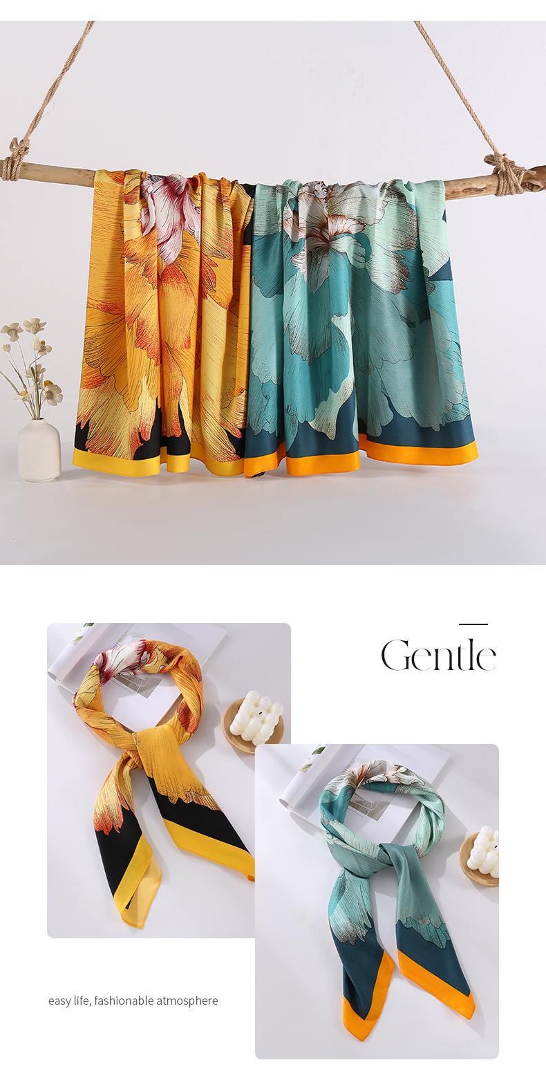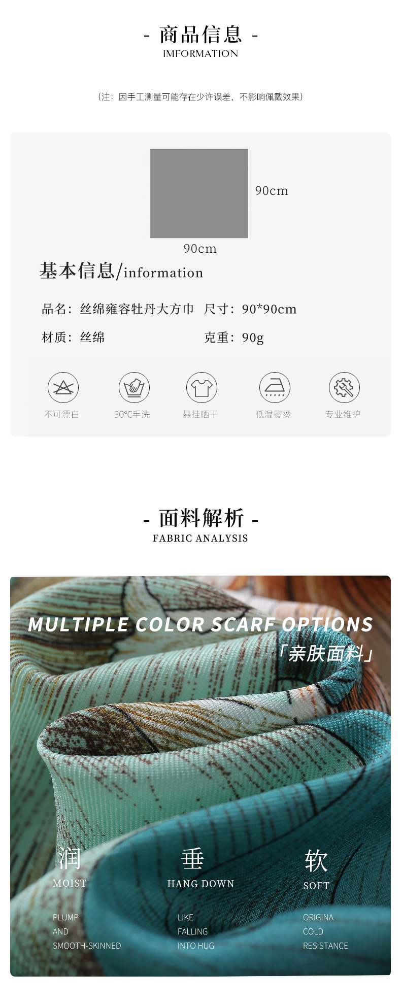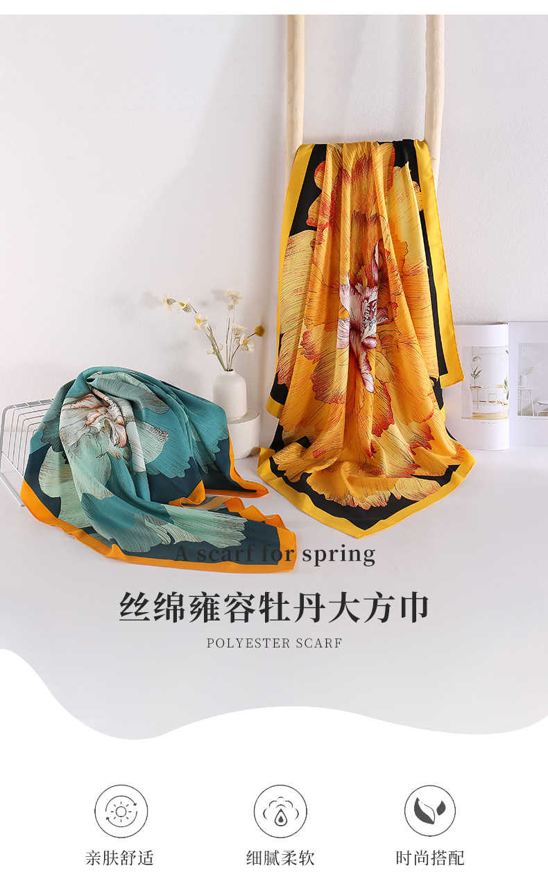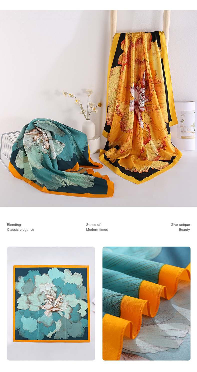 아름답고 우아한 모란 90 실크 스카프 여성 Ins 디자인 센스 우아한 장식 실크면 대형 스퀘어 스카프 목도리 휴일 선물