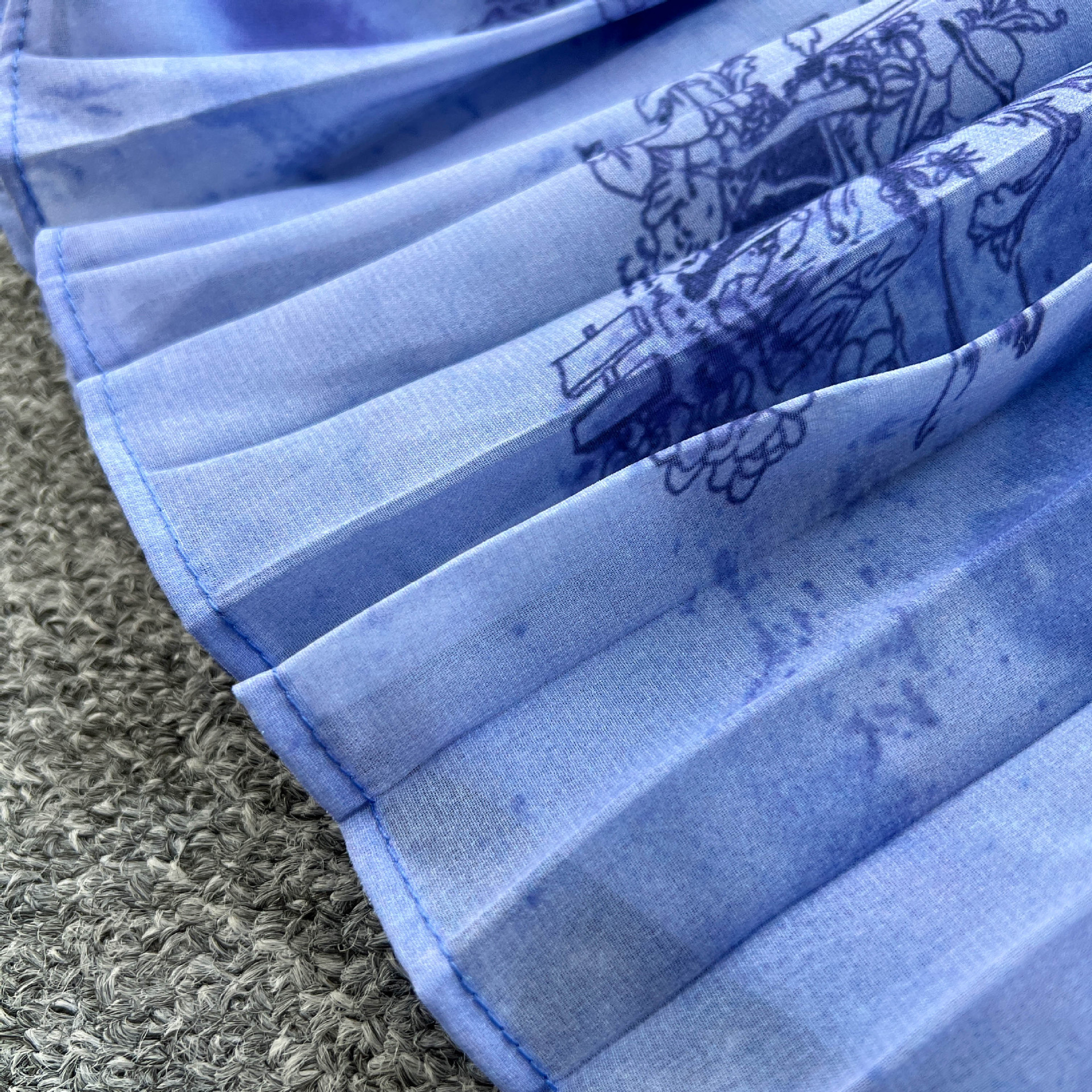 우아한 투피스 여성 프랑스 스타일 하이 엔드 스트랩 허리 랜턴 슬리브 프린트 쉬폰 탑 하이 허리 스커트스토어 가기