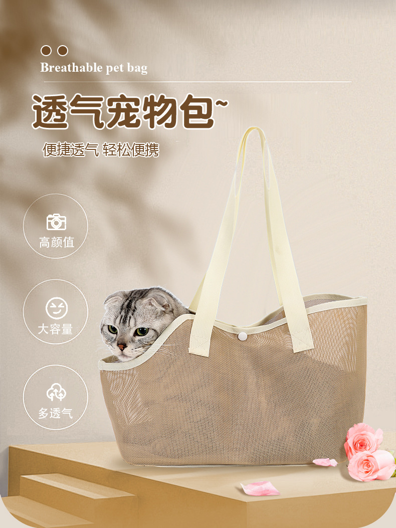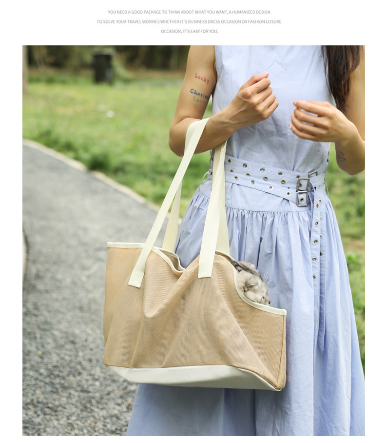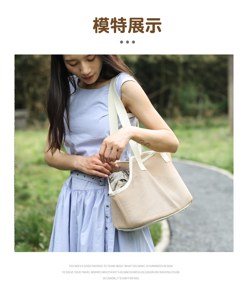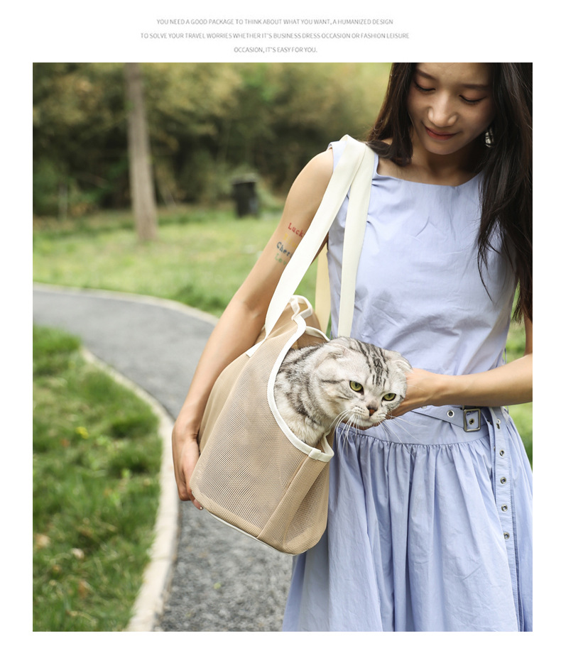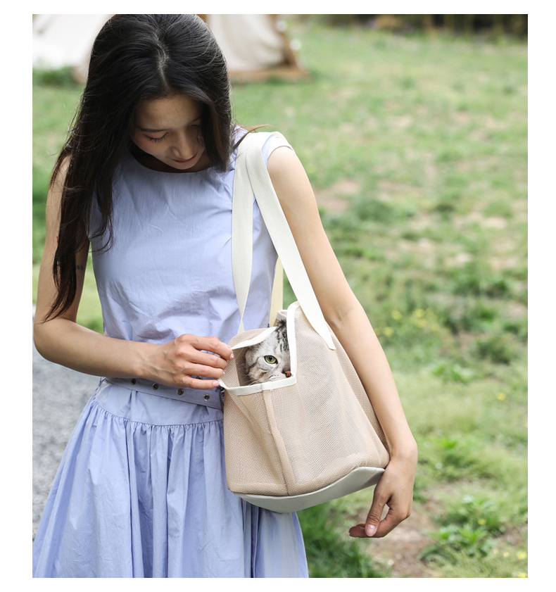 여름 메쉬 통기성 경량 대용량 고양이 가방 어깨 핸드백 휴대용 여행 접이식 애완 동물 가방