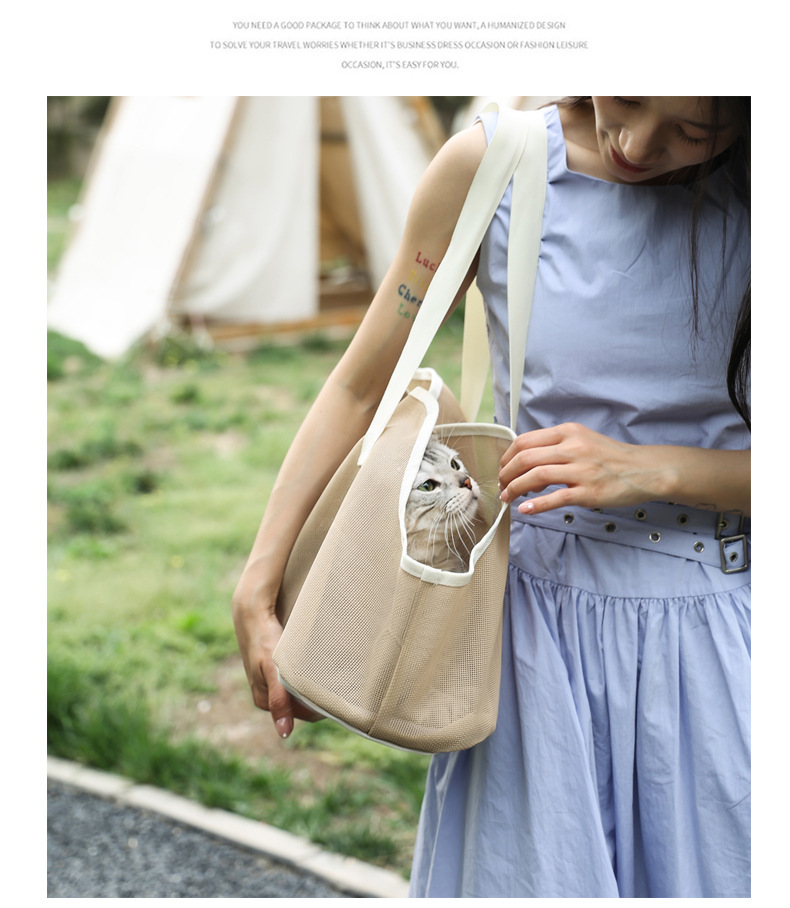 여름 메쉬 통기성 경량 대용량 고양이 가방 어깨 핸드백 휴대용 여행 접이식 애완 동물 가방스토어 가기