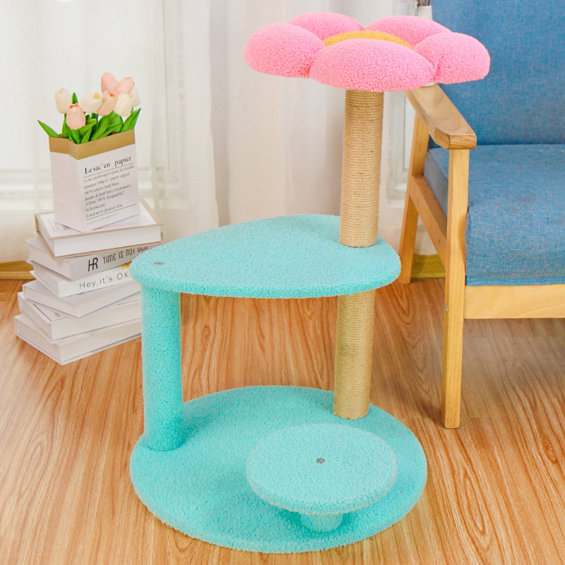 • 고양이 등산 프레임 - 4겹 매화 - 핑크 [모든 단계의 고양이에게 적합]