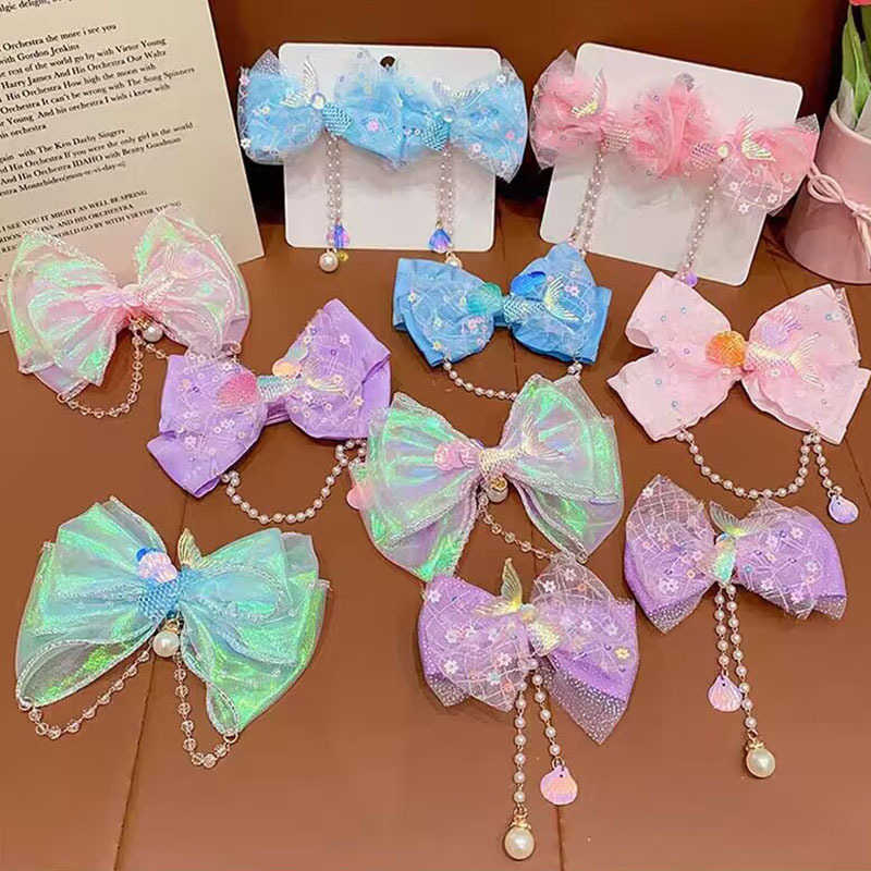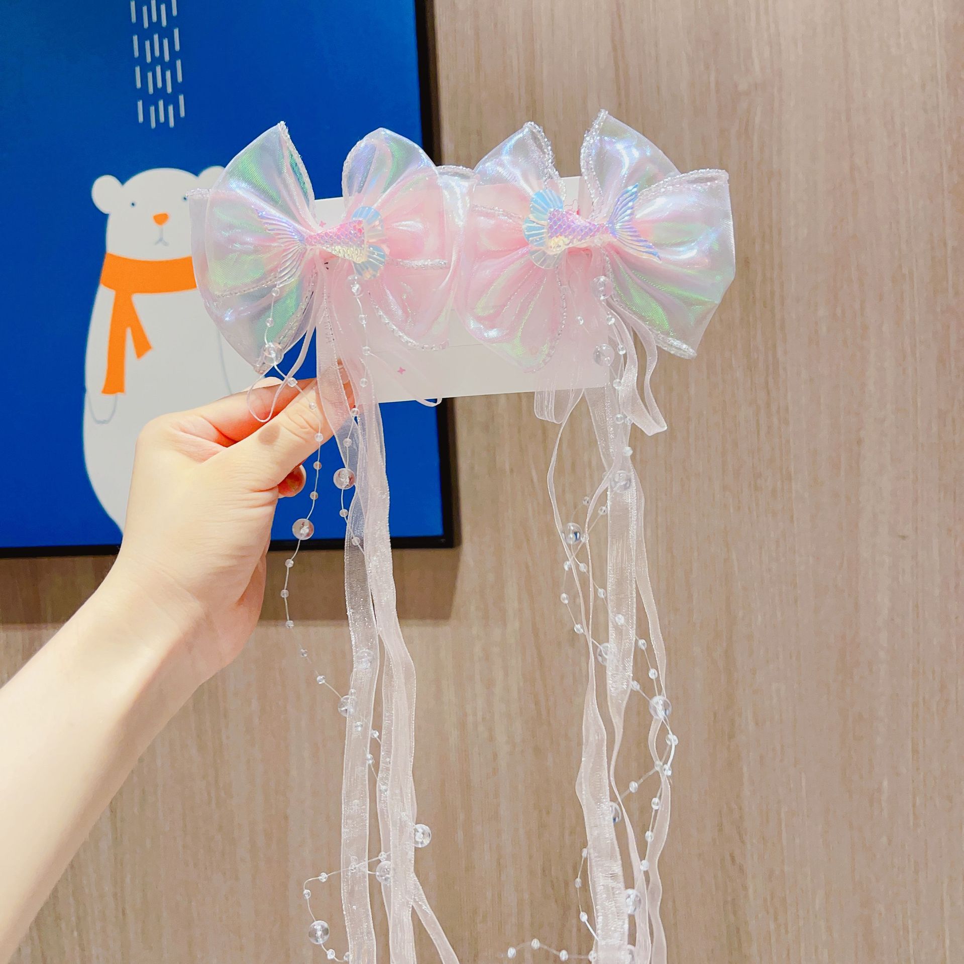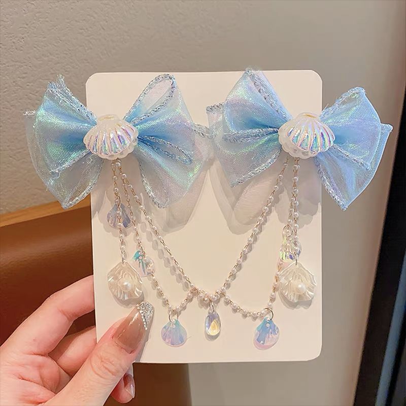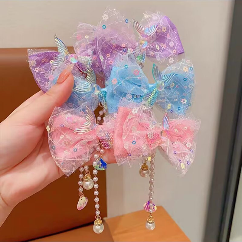 어린이 공주 골동품 헤어핀 여아 인어 머리 장식 헤어 액세서리 한푸 이마 체인 구슬 빈티지 활 헤어핀