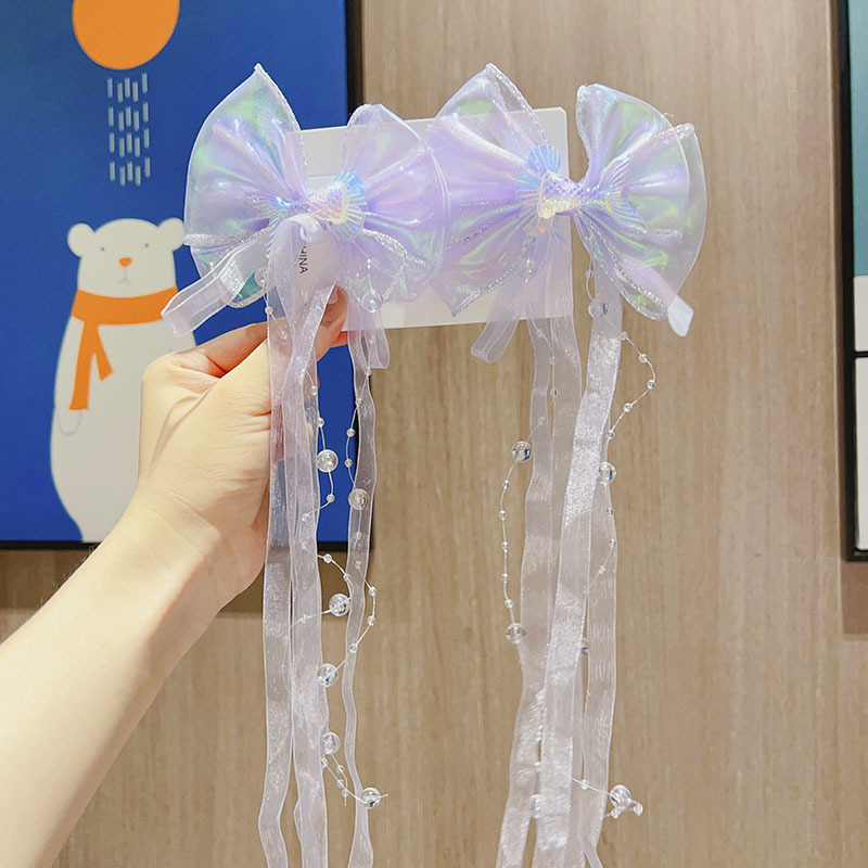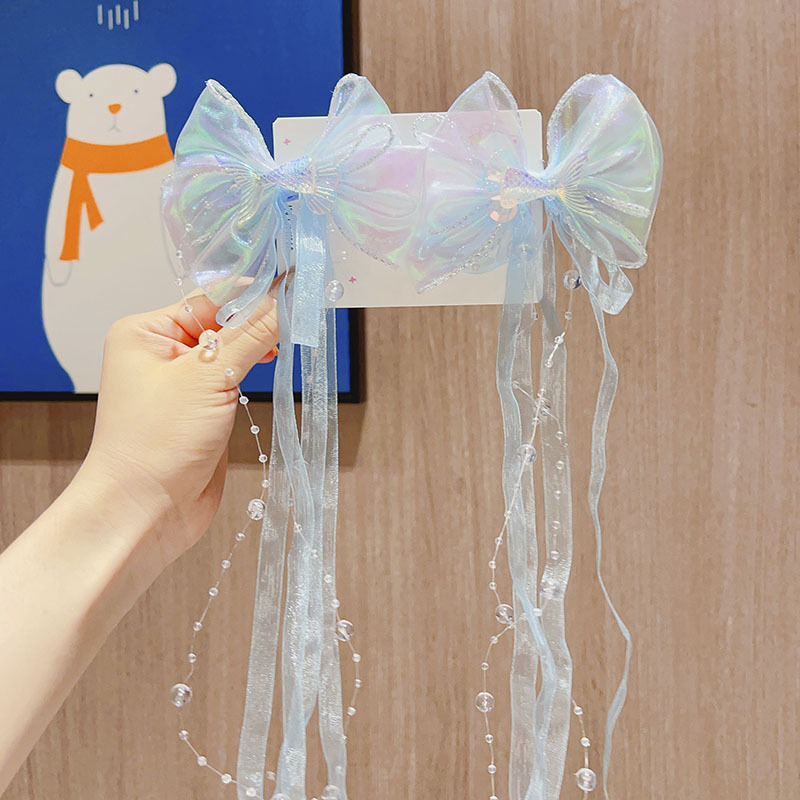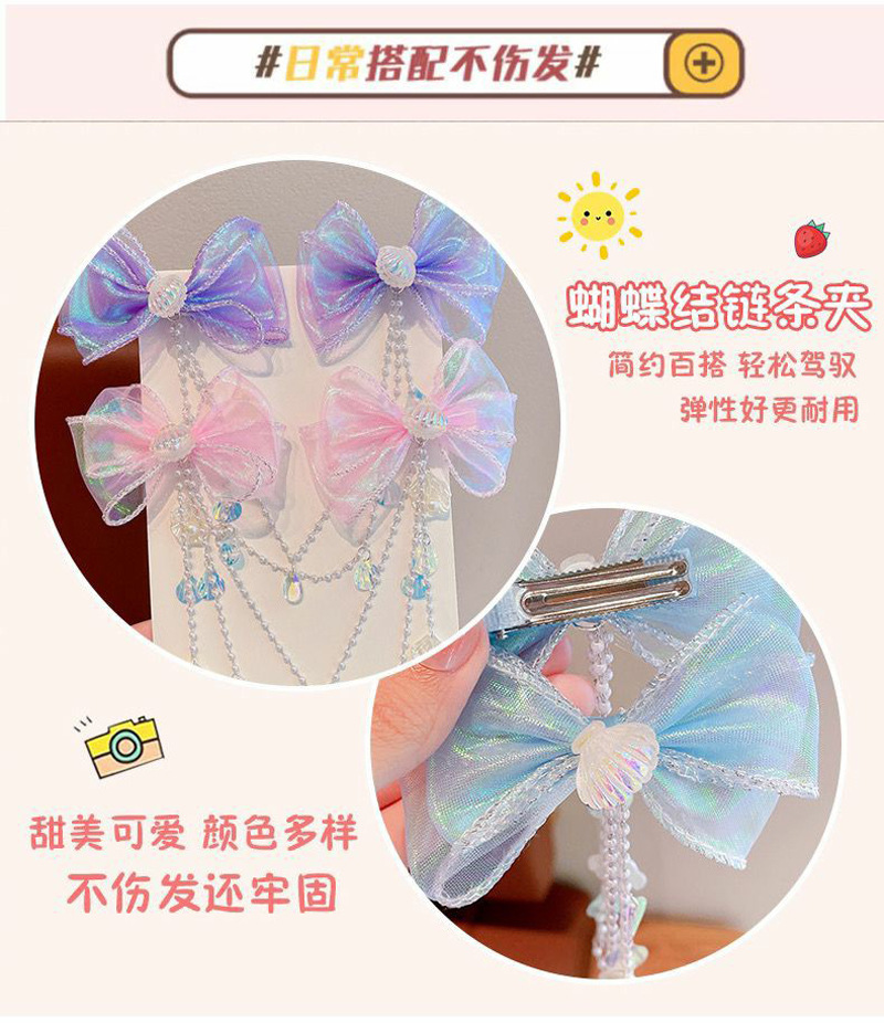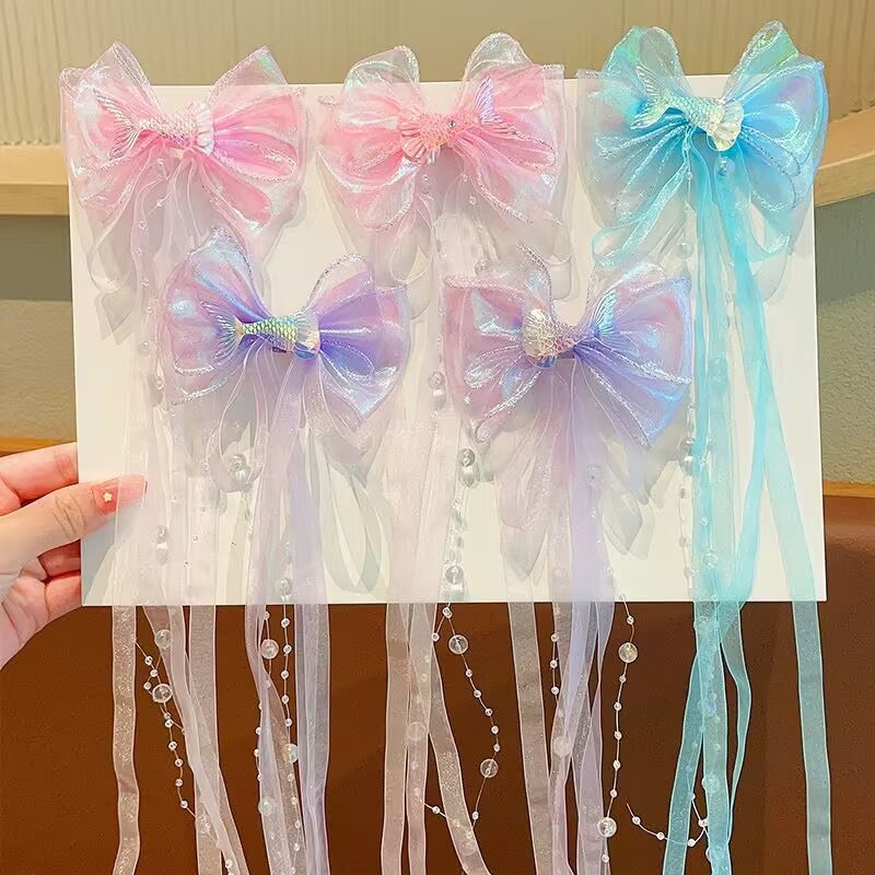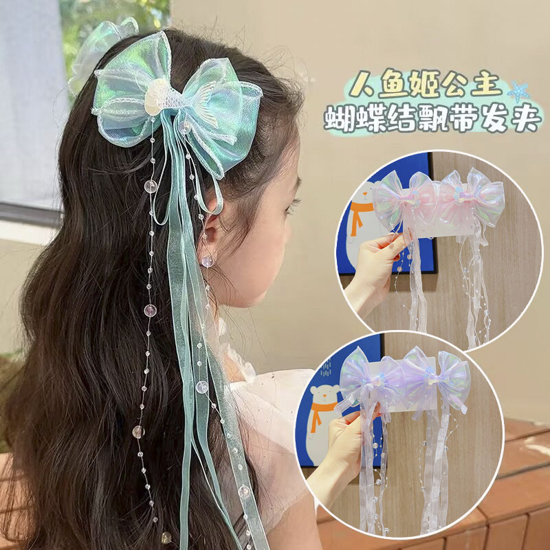 어린이 공주 골동품 헤어핀 여아 인어 머리 장식 헤어 액세서리 한푸 이마 체인 구슬 빈티지 활 헤어핀