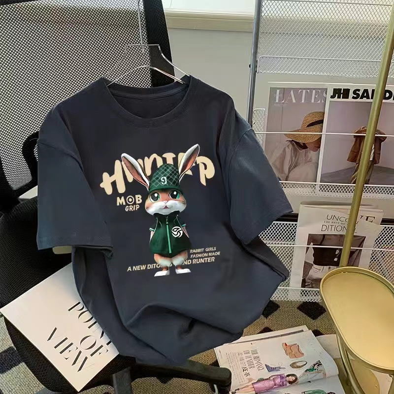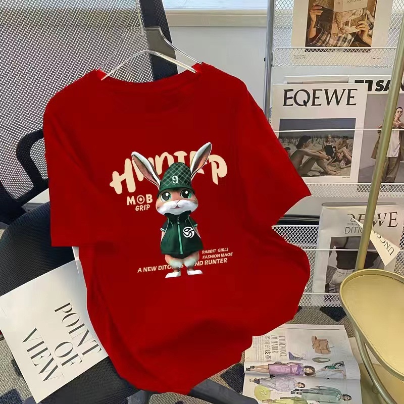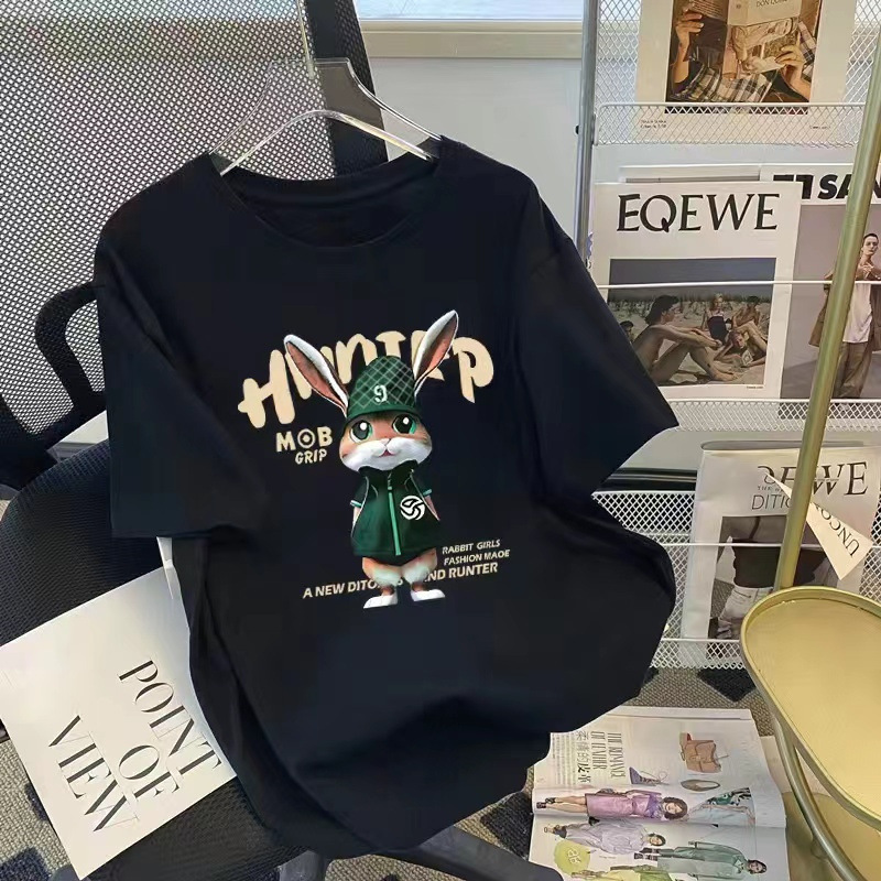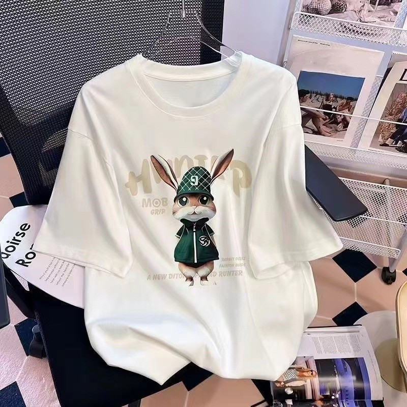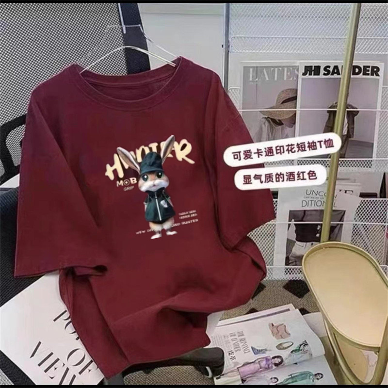 반팔 티셔츠 여성의 2024 새로운 최고 소녀 부드러운 반팔 티셔츠 만화 컬러 어깨 티셔츠 도매스토어 가기