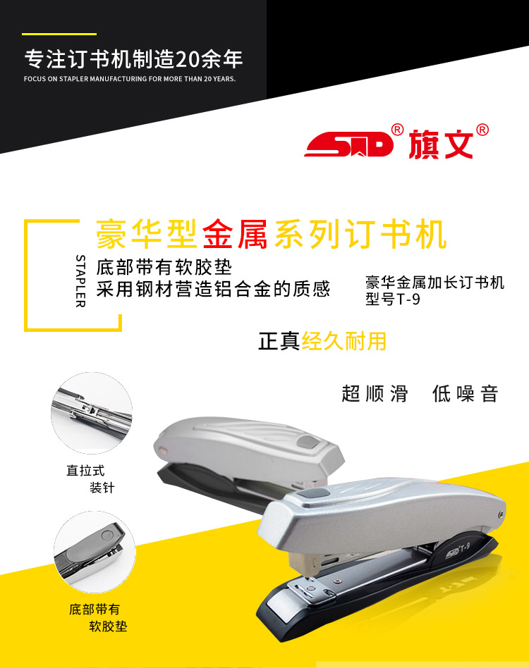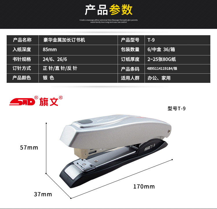 Qiwen T-9 금속 확장 스테이플러 No. 12 경제적 표준 사무실 스테이플러 바인딩 25 페이지 스테이플러스토어 가기