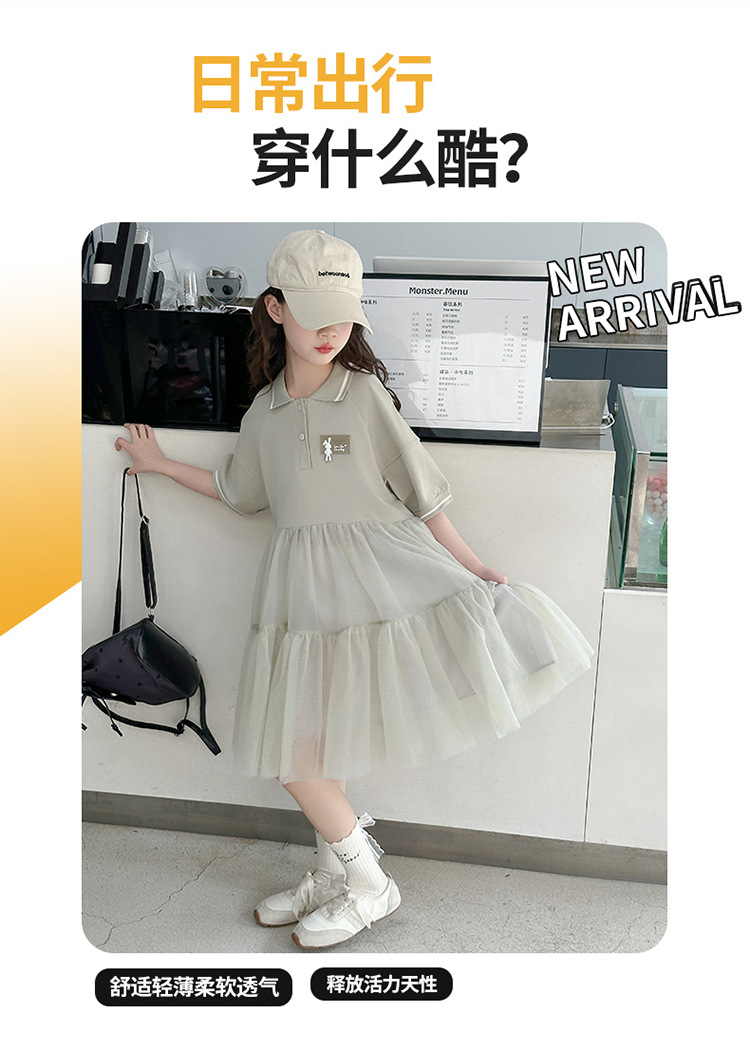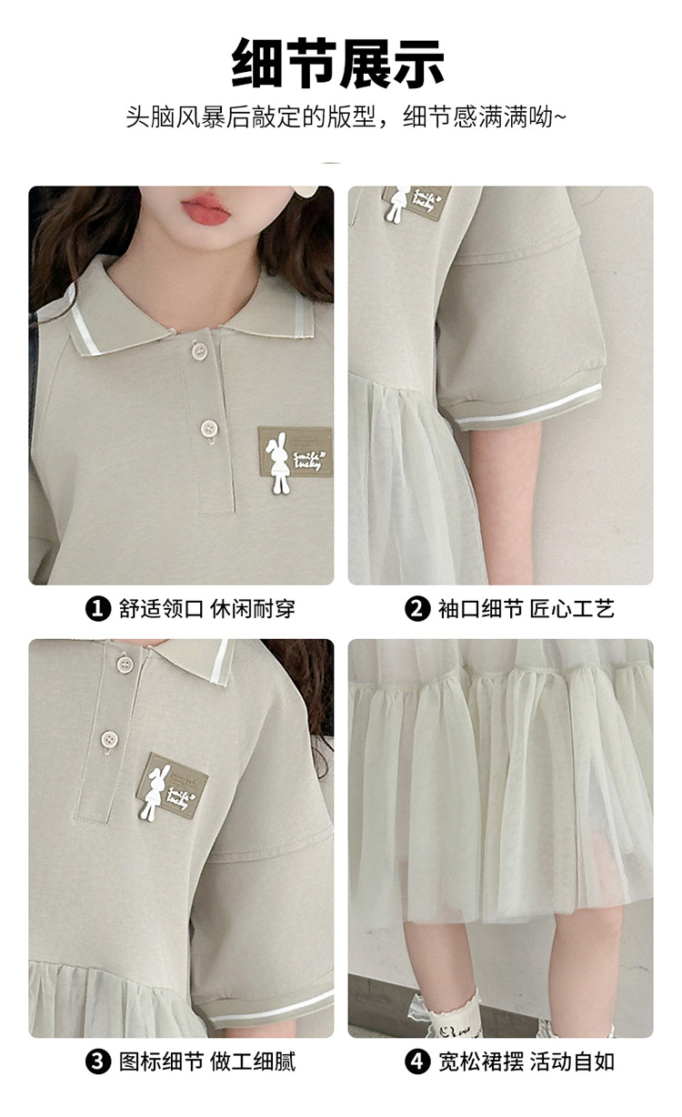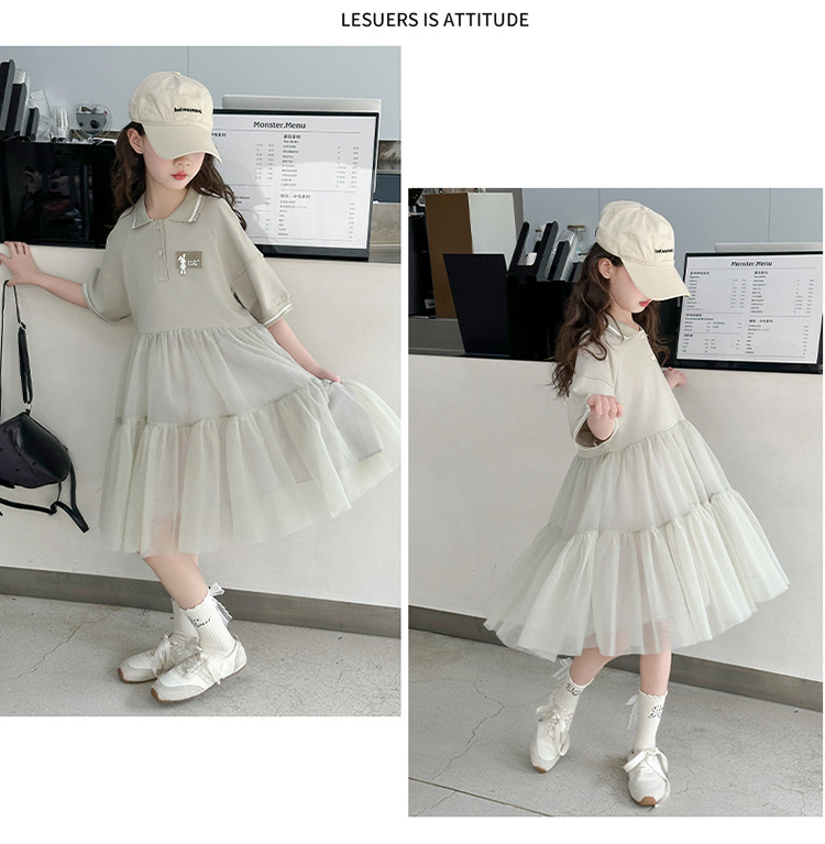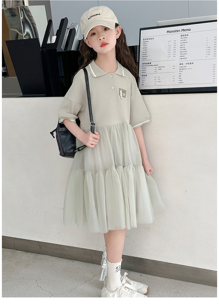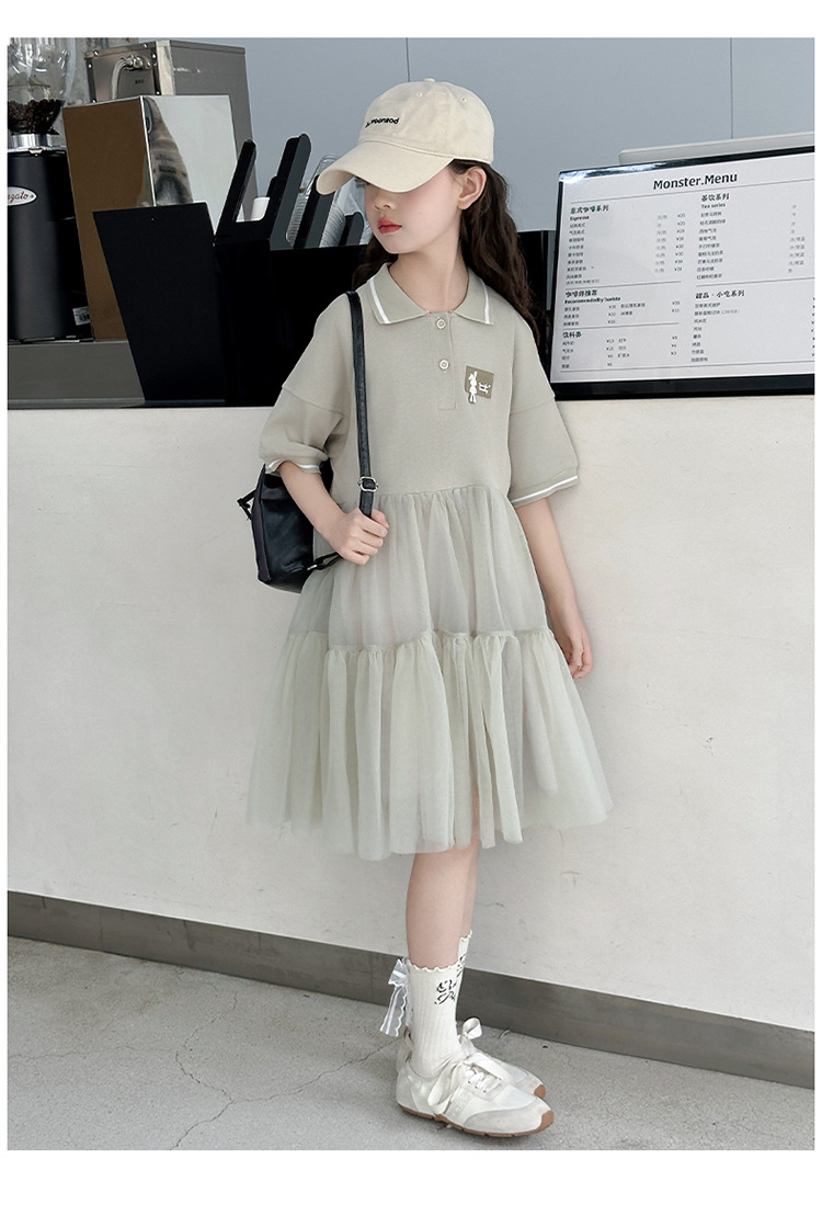 여자 드레스 여름 2025 새로운 여자 대학 스타일 폴로 거즈 스커트 어린이 12 세 어린 소녀 스커트스토어 가기