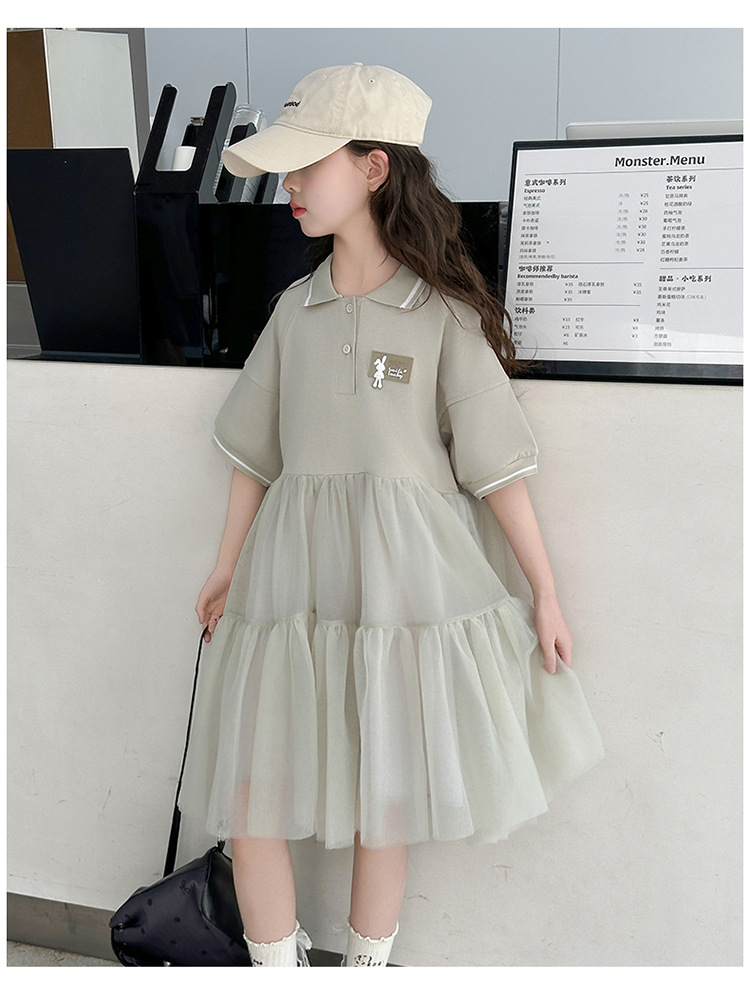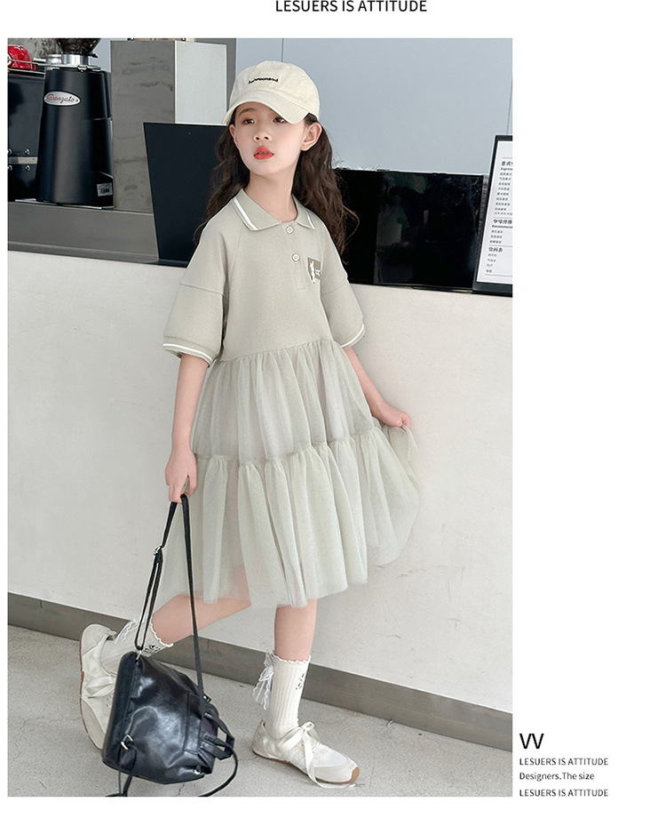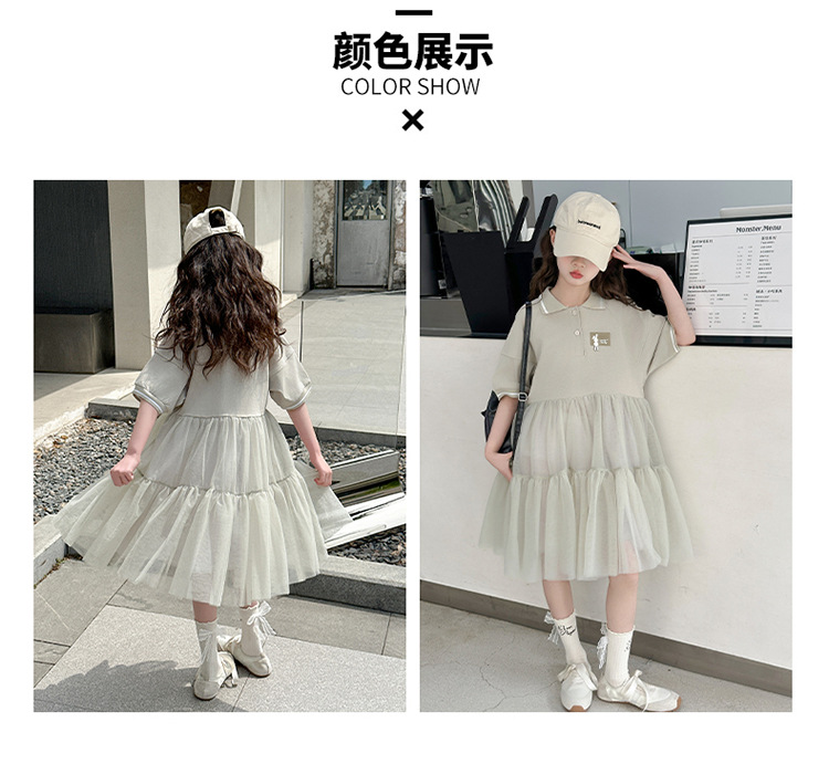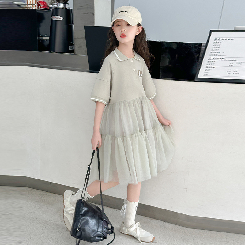 여자 드레스 여름 2025 새로운 여자 대학 스타일 폴로 거즈 스커트 어린이 12 세 어린 소녀 스커트