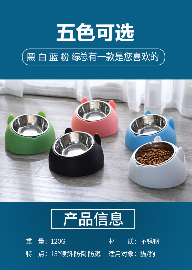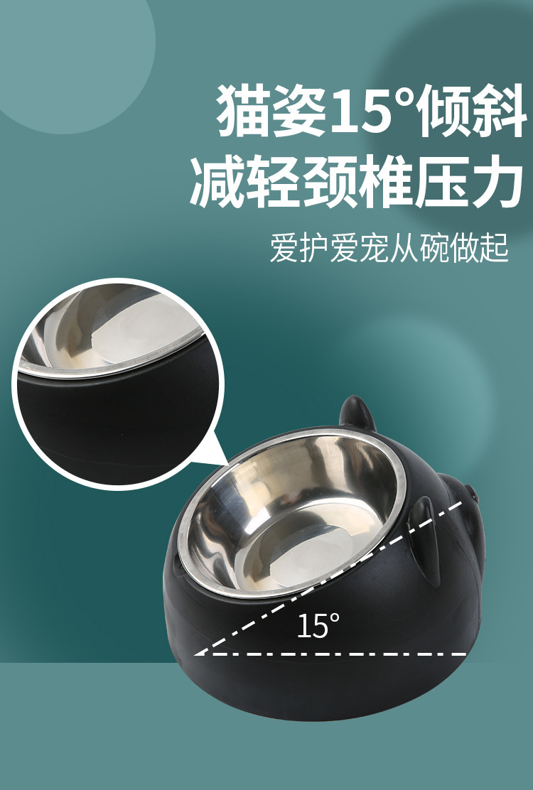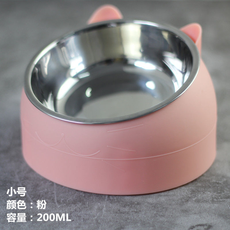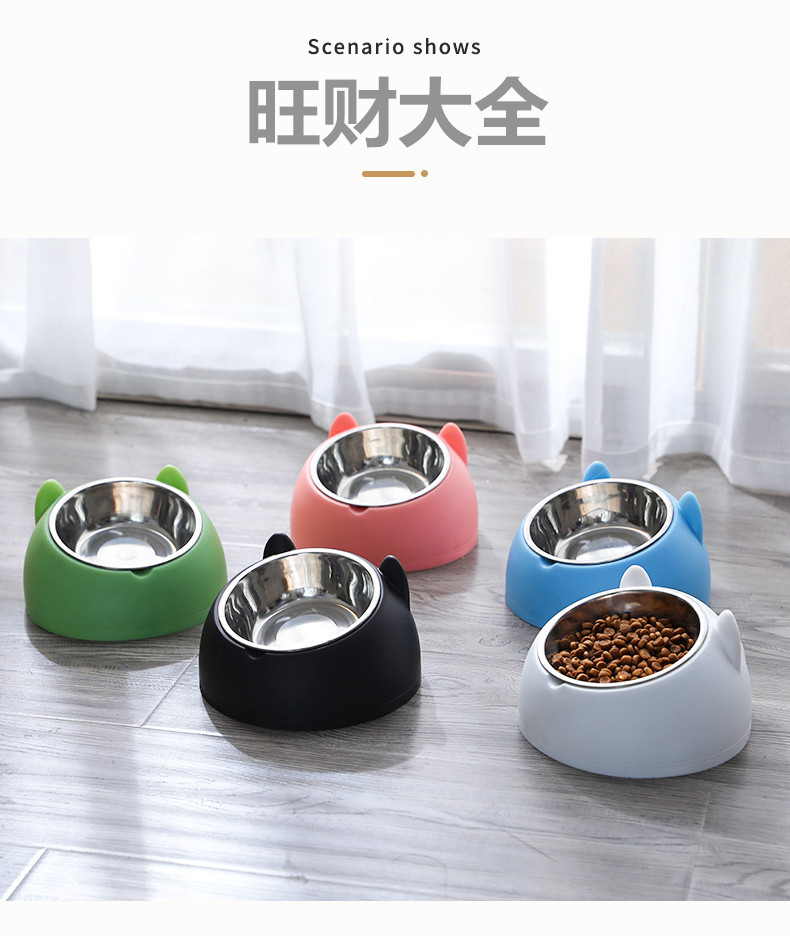 슈퍼 귀여운 큰 직경 고양이 그릇 개 그릇 스테인레스 스틸 통합 그릇 목 보호 그릇 대각선 이중 층 반대로 가을 그릇 애완 동물 분지