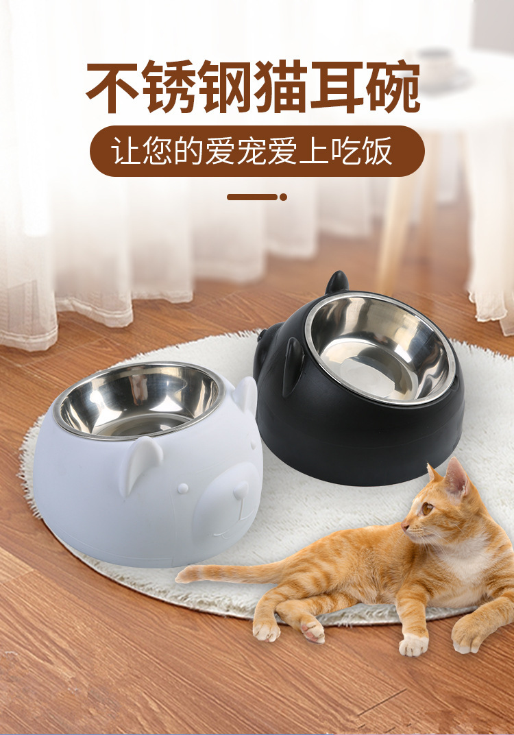 슈퍼 귀여운 큰 직경 고양이 그릇 개 그릇 스테인레스 스틸 통합 그릇 목 보호 그릇 대각선 이중 층 반대로 가을 그릇 애완 동물 분지스토어 가기
