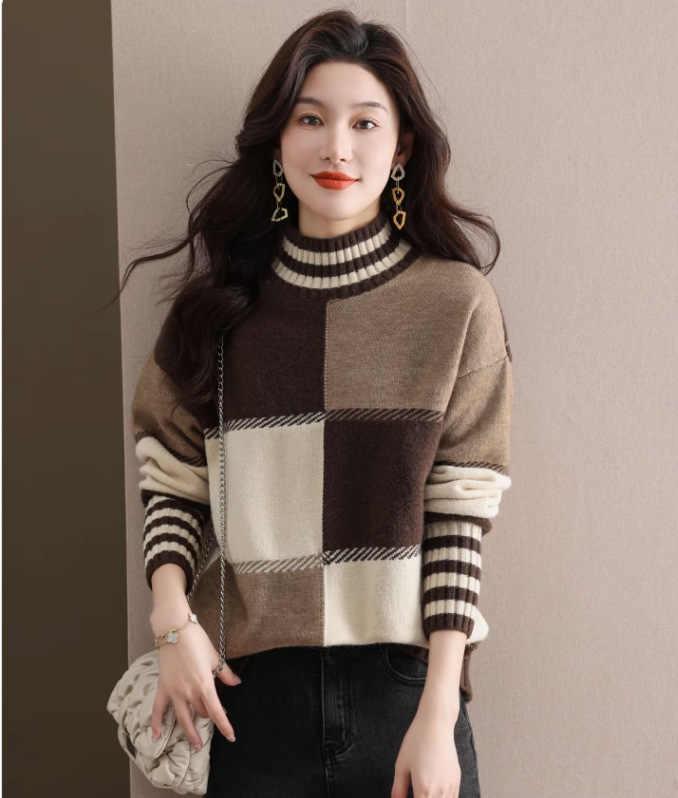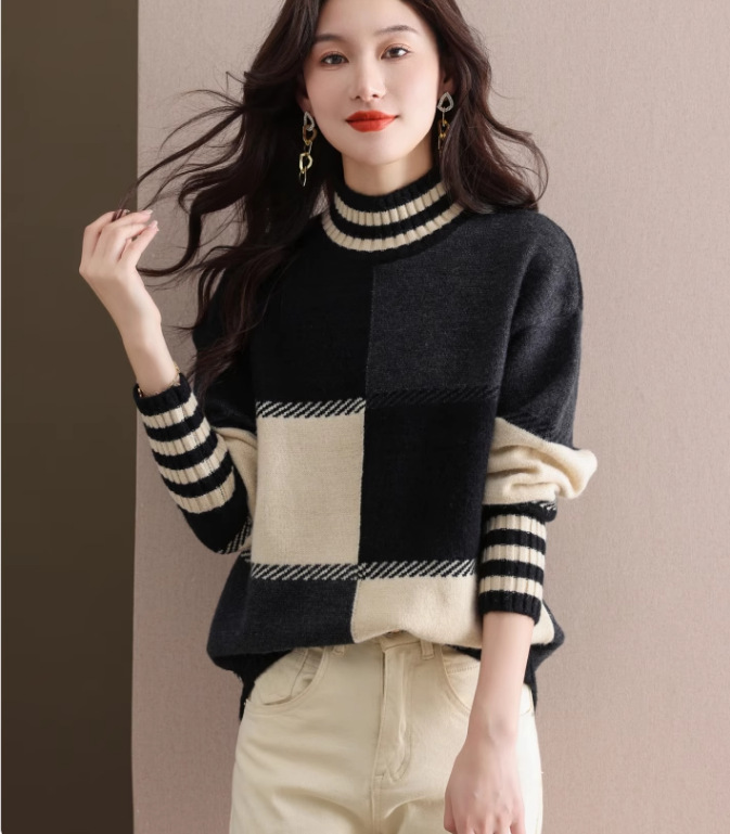 통통녀 가을과 겨울 플러스 사이즈 반 터틀넥 캐시미어 스웨터 여성용 루즈 100.00kg 지방 내부 니트베이스 셔츠