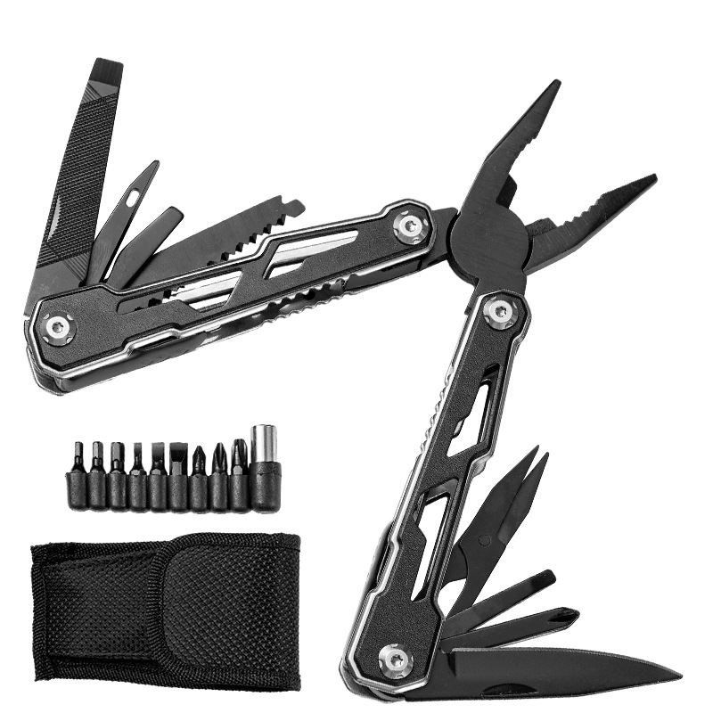 (15合一功能)【钳头(尖嘴钳、圆管钳、剪钳】【小刀】【一字螺丝刀(大、中、小)】 【脱钩器】【双面搓刀】【尖锥】【开罐器】【开瓶器】【坚果夹】【十字螺丝刀】【牙刀】 |