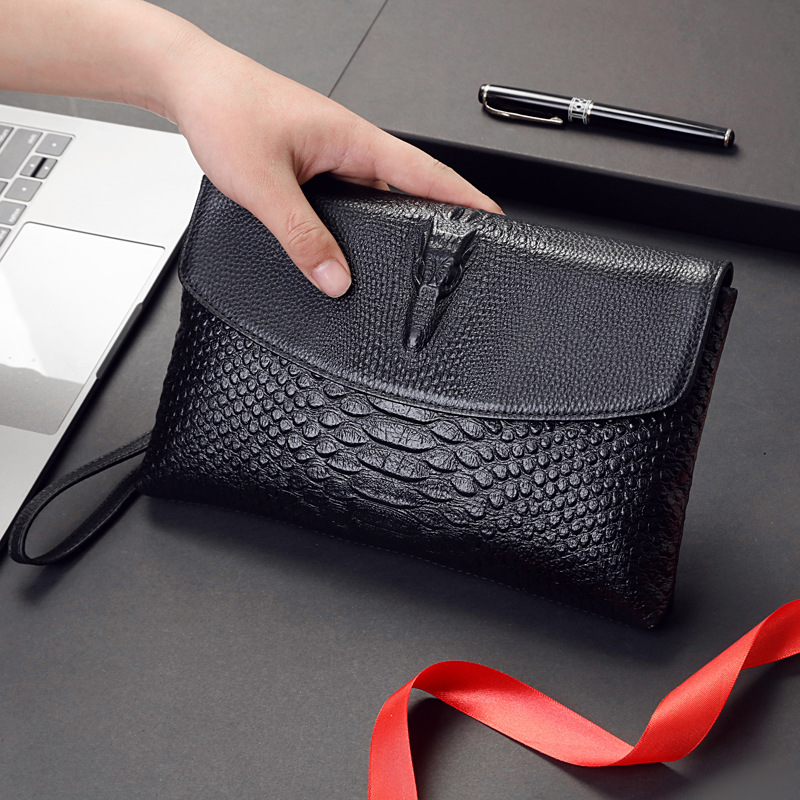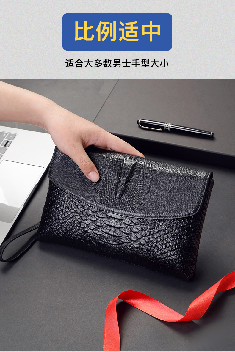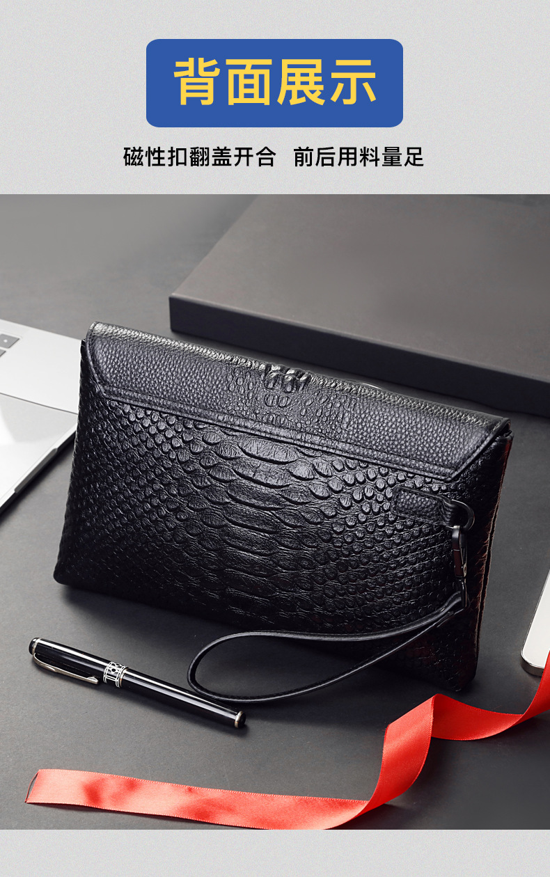 도매 악어 무늬 질감의 남성용 클러치백 블랙 천연 가죽 소프트 가죽 지갑 신상 대용량 핸드백스토어 가기