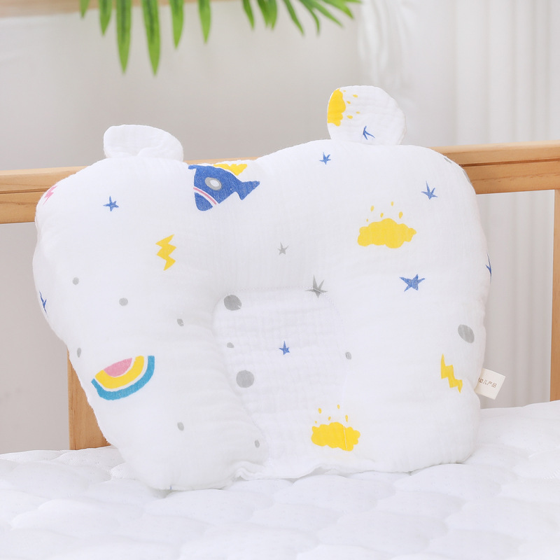 3 차원 귀 모양의 베개 새로운 아기 베개 면직물 사계절 베개 0-1 년 된 반사 방지 헤드 모양의 베개