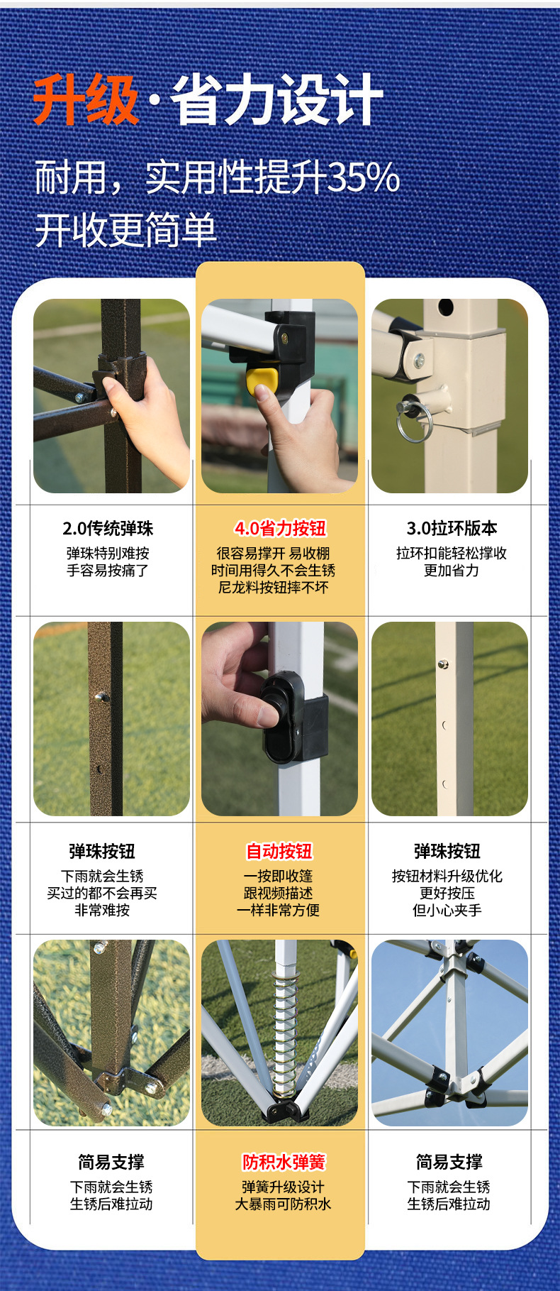 야외 광고용 사각 텐트 3x3 특대형 차양막, 판매대, 자외선 차단, 네 개의 다리가 있는 대형 우산, 전시회용 사각 텐트스토어 가기