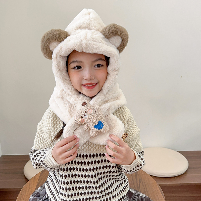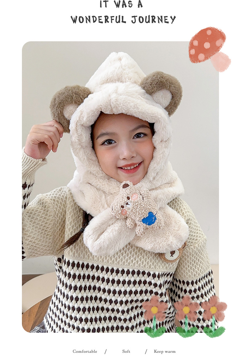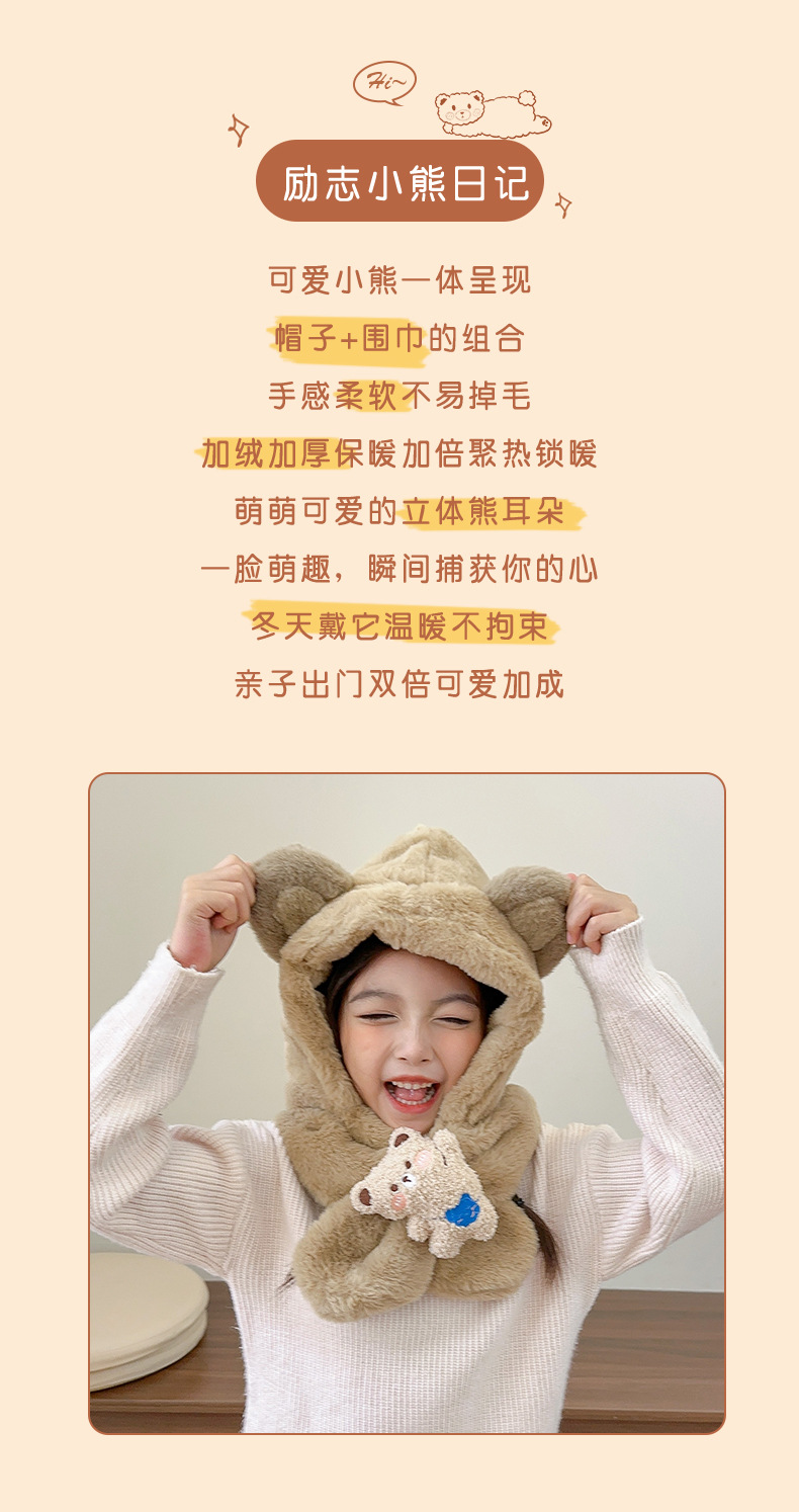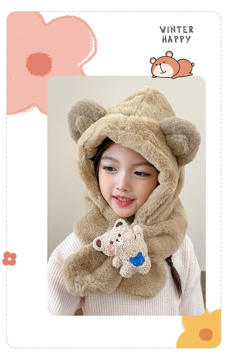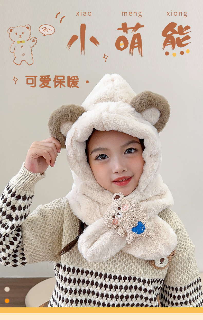 만화 곰 귀 소년과 소녀 겨울 귀여운 모자 봉제 스카프 통합 귀 보호 따뜻한 목 방풍 모자스토어 가기