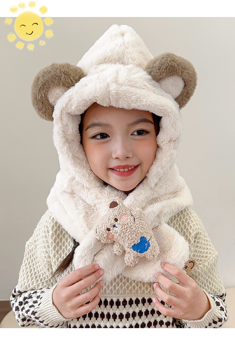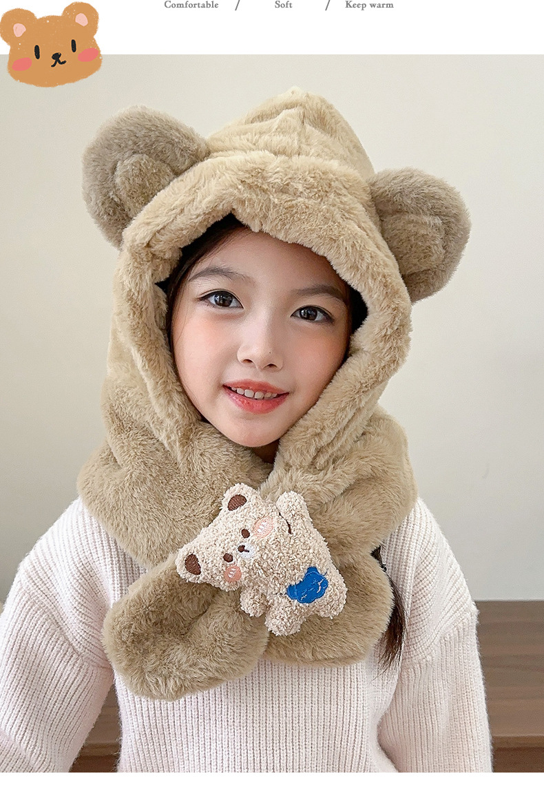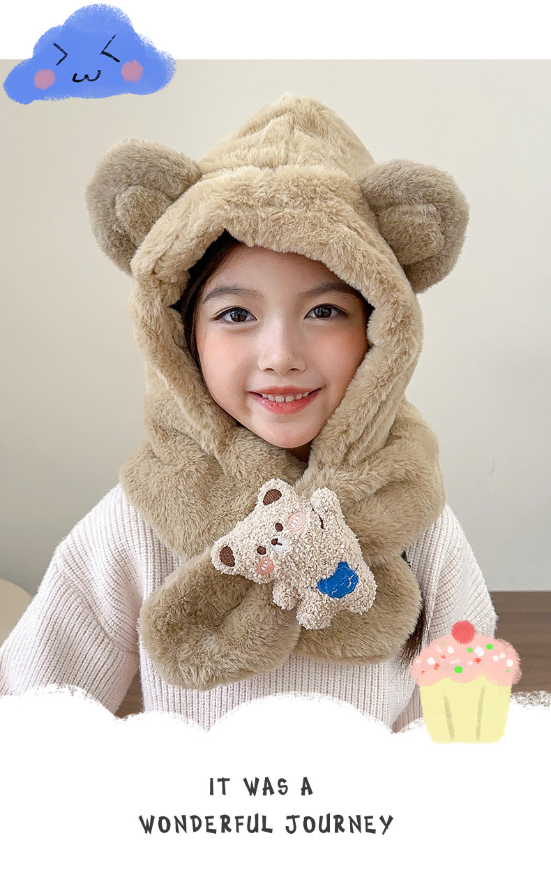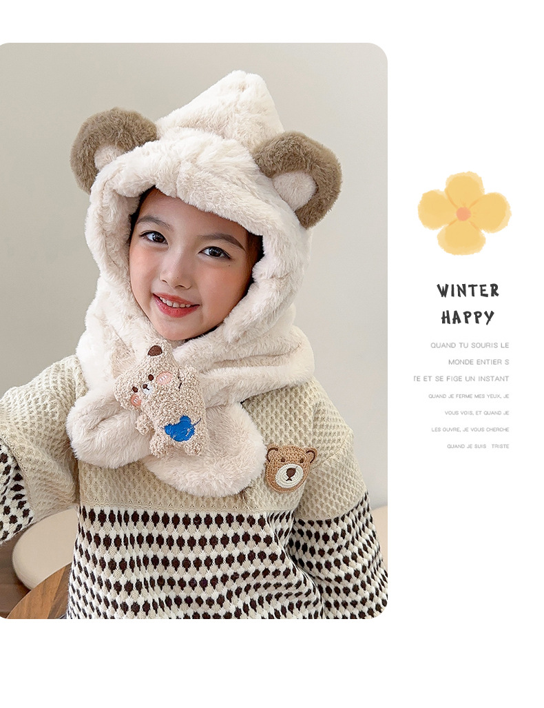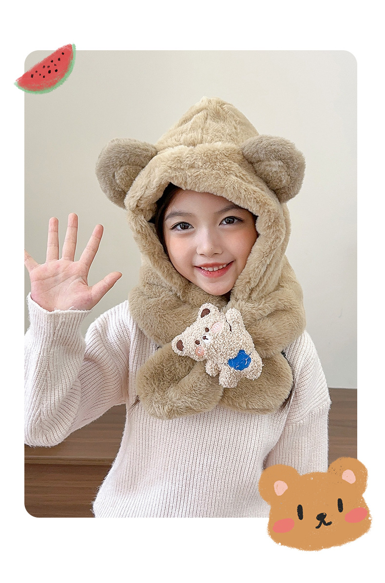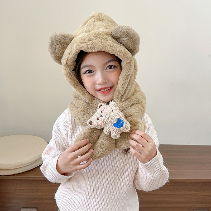 만화 곰 귀 소년과 소녀 겨울 귀여운 모자 봉제 스카프 통합 귀 보호 따뜻한 목 방풍 모자스토어 가기