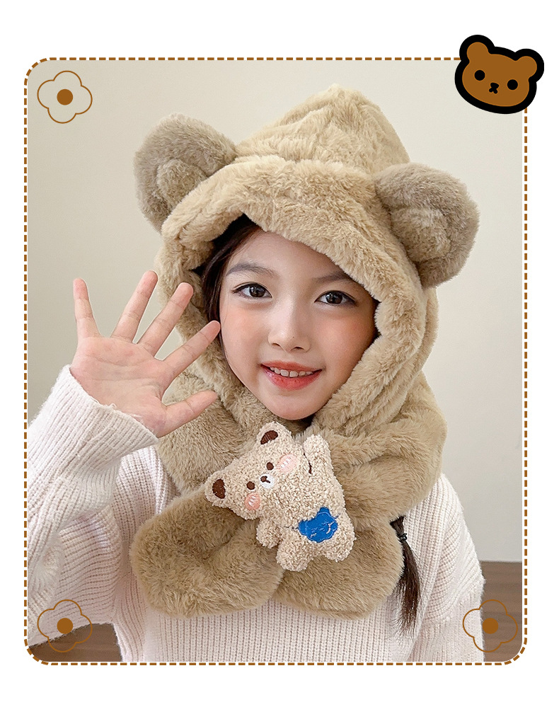 만화 곰 귀 소년과 소녀 겨울 귀여운 모자 봉제 스카프 통합 귀 보호 따뜻한 목 방풍 모자