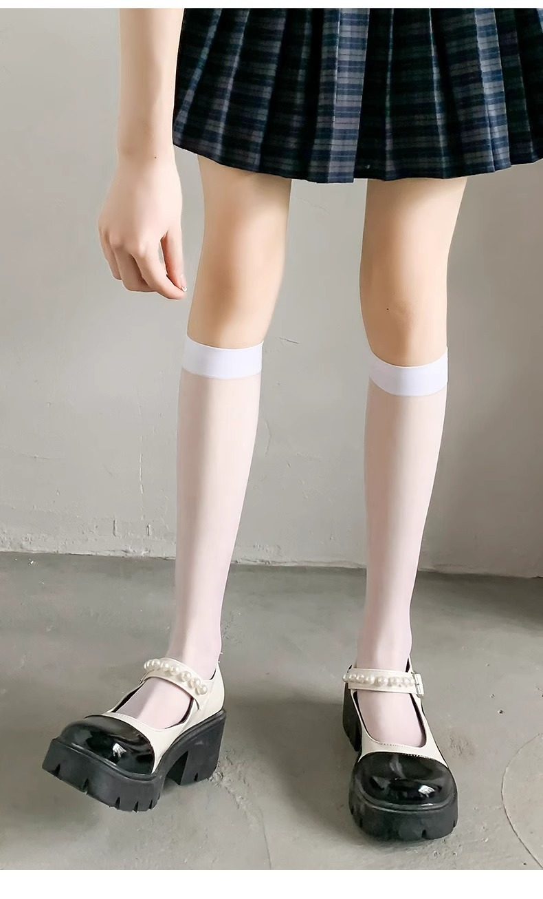 양말 여성 봄과 여름 벨벳 스타킹, 일본 스타일 대학 스타일 JK 작은 가죽 신발 흑백 신발